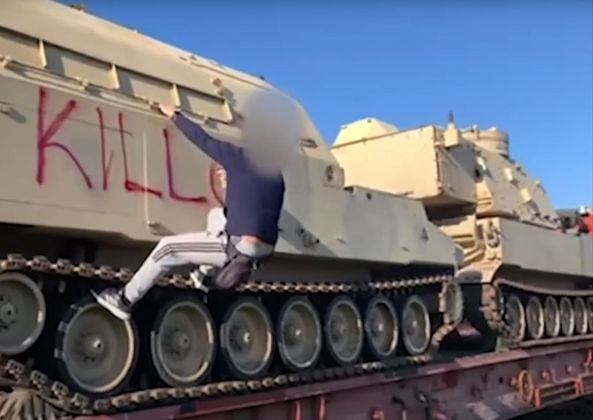 Коммунисты скандировали лозунг «Александруполис ― порт народов, а не оплот империалистов». Также они написали красной краской на танках лозунг «Убийцы, возвращайтесь домой!». Члены политических организаций не только не позволили поезду проехать, но и заставили дать задний ход.