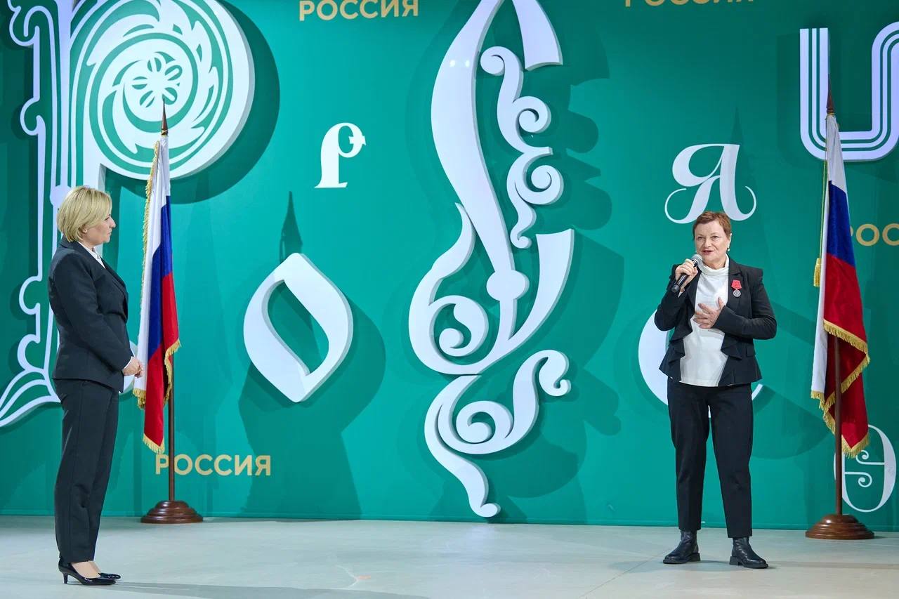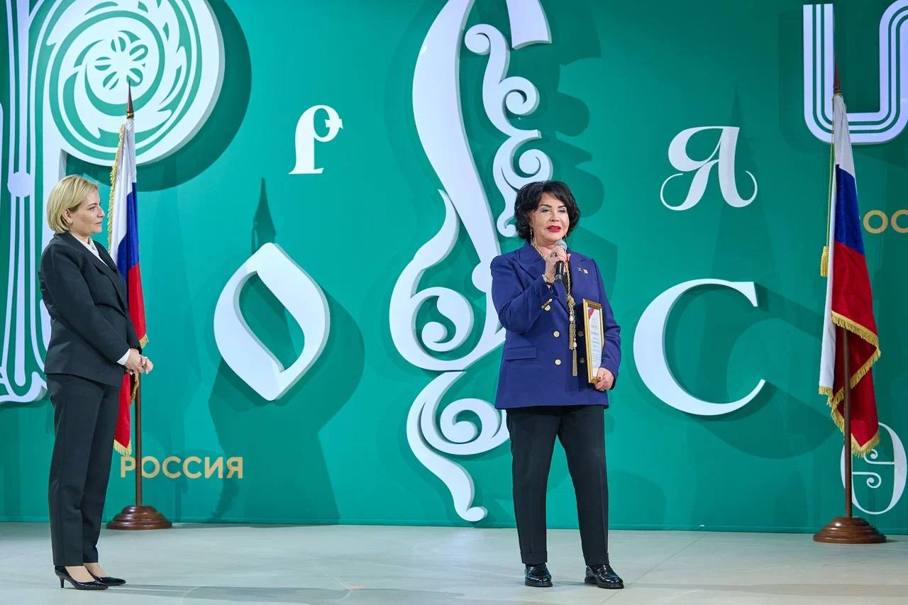 В рамках работы Международной выставки-форума «Россия» на ВДНХ состоялось вручение государственных наград. Церемония прошла в павильоне Министерства культуры Российской Федерации «Наша культура». Министр культуры России Ольга Любимова вручила награды 27 выдающимся деятелям культуры. Орденом дружбы награждена артистка Московского академического театра имени Вл.Маяковского Татьяна Аугшкап. Орденом «За заслуги в культуре и искусстве» награждены: – артист Московского Художественного академического театра имени А.П.Чехова Авангард Леонтьев; – художественный руководитель Московского молодежного экспериментального театра под руководством Вячеслава Спесивцева Вячеслав Спесивцев; – артистка Российского государственного академического молодежного театра Татьяна Шатилова. Медаль ордена «За заслуги перед Отечеством» II степени вручили начальнику отдела Союза художников России Татьяне Бойцовой. Медалью «За труды в культуре и искусстве» награждены: – директор Библиотеки-читальни им. И.С. Тургенева Ромуальд Крылов-Иодко; – артист Театра на Малой Ордынке Владимир Майсурадзе; – начальник цеха Российского государственного академического молодежного театра Ольга Наумова; – руководитель литературно-драматической части Московского театра «ET CETERA» под руководством Александра Калягина Татьяна Никольская; – художник, члена Творческого содружества «Евразийский художественный союз» Петр Пекленков; – артист Театра на Малой Ордынке Владимир Тягичев. Почетное звание «Заслуженный артист Российской Федерации» присвоено: – артистке Московского драматического театра имени К.С. Станиславского Ирине Галибиной; – артисту Московского академического театра имени Вл.Маяковского Вячеславу Ковалеву; – артисту Московского академического театра имени Вл.Маяковского Константину Константинову; – артисту Московского академического театра имени Вл.Маяковского Виталию Ленскому; – артистке Московского академического театра имени Вл.Маяковского Зое Симоновой; – первому солисту группы флейт, концертмейстеру группы деревянных духовых инструментов Академического симфонического оркестра Московской государственной академической филармонии Сергею Турмилову; – концертмейстеру Академического симфонического оркестра Московской государственной академической филармонии Дмитрию Шорохову. Почетное звание «Заслуженный работник культуры Российской Федерации» присвоено: – заместителю директора по общим вопросам Объединённых культурных центров Новомосковского и Троицкого административных округов Евгению Медведеву; – директору Детской художественной школы имени В.А.Серова Екатерине Серовой. Почетную грамоту Президента Российской Федерации вручили директор Мемориального музея А.Н.Скрябина Александру Лазареву. Благодарность Президента Российской Федерации объявлена: – артисту Родиону Газманову; – директору-художественному руководителю Государственного академического русского народного ансамбля «Россия» имени Л.Г.Зыкиной Дмитрию Дмитриенко; – кинодраматургу, члену Союза кинематографистов Российской Федерации Рауфжону Кубаеву; – исполнительному директору Федерального фонда социальной и экономической поддержки отечественной кинематографии (Фонда кино) Федору Соснову. Благодарность Правительства Российской Фе