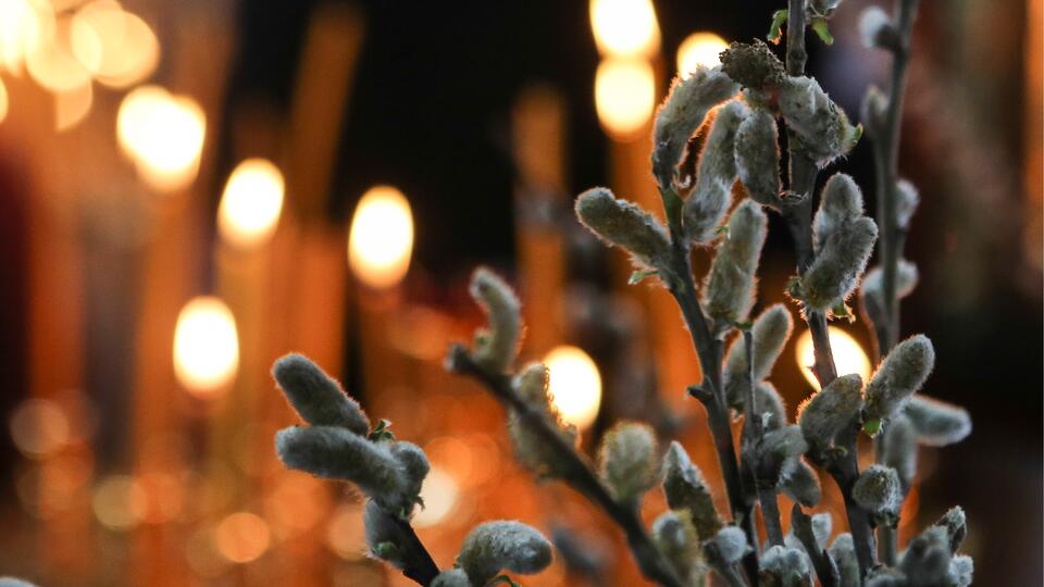 К Вербному воскресенью принято освящать веточки вербы, вспоминая встречу Спасителя в Иерусалиме. Освящают веточки в субботу, некоторые делают это утром в воскресенье после литургии.