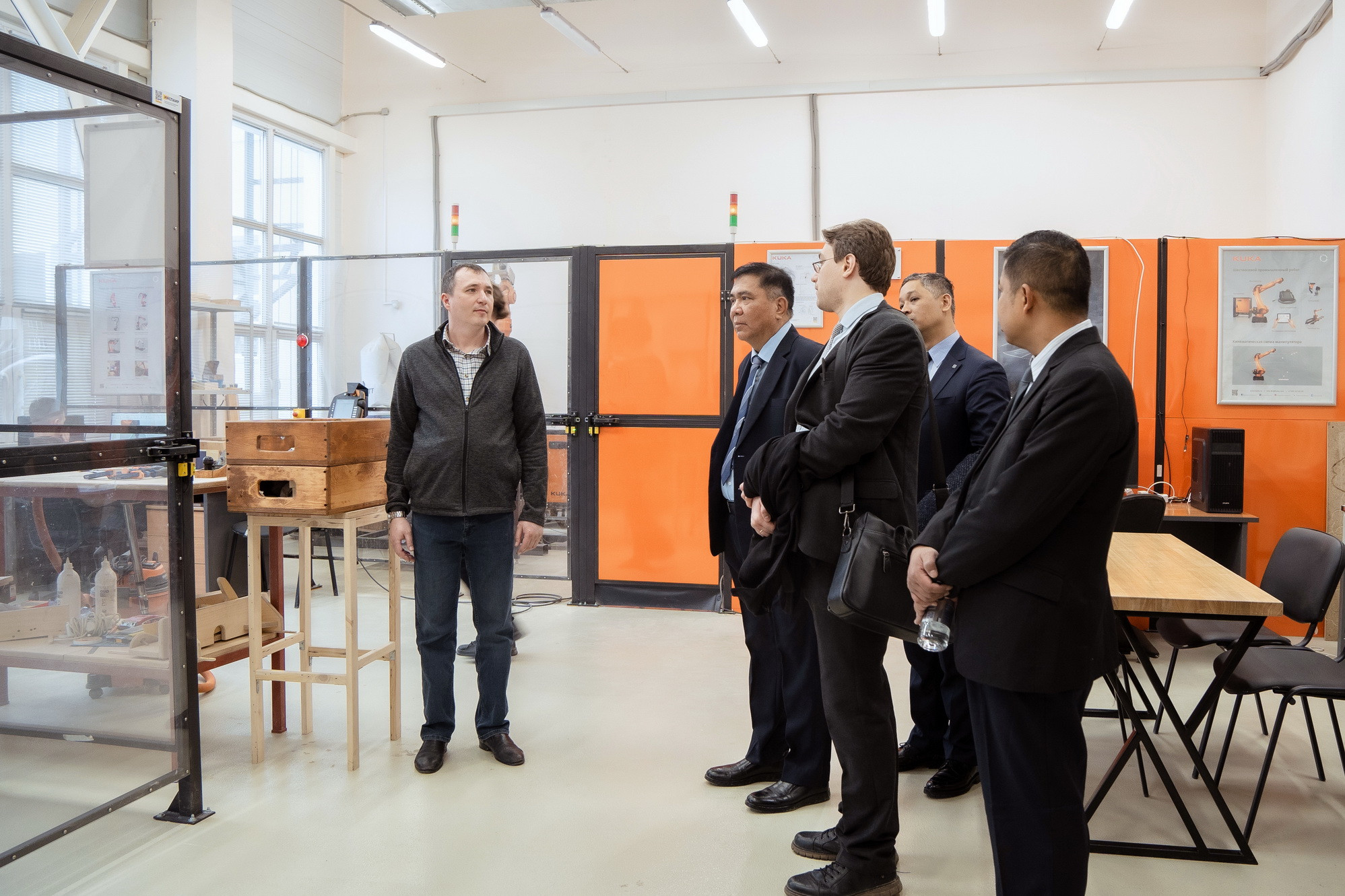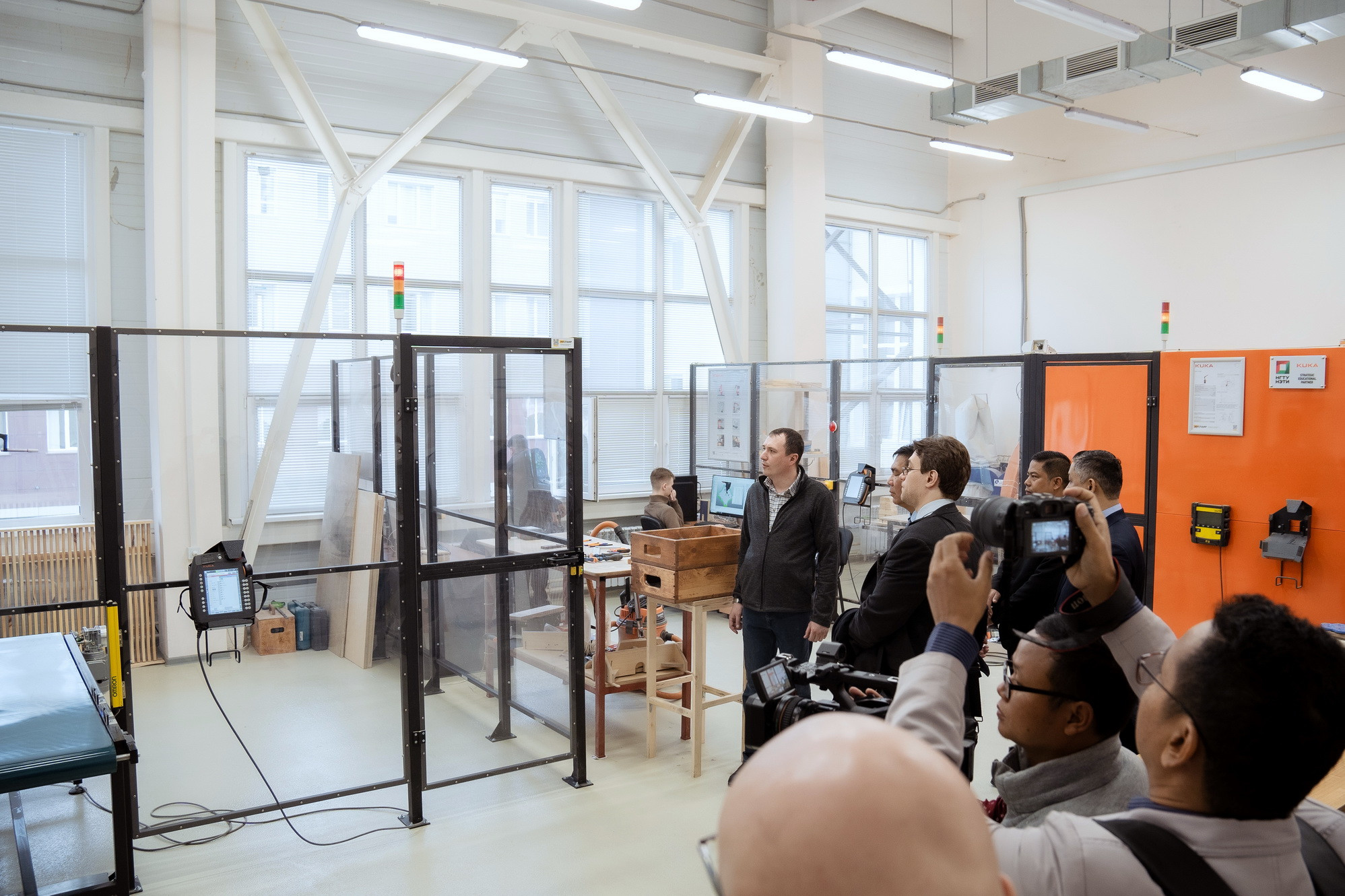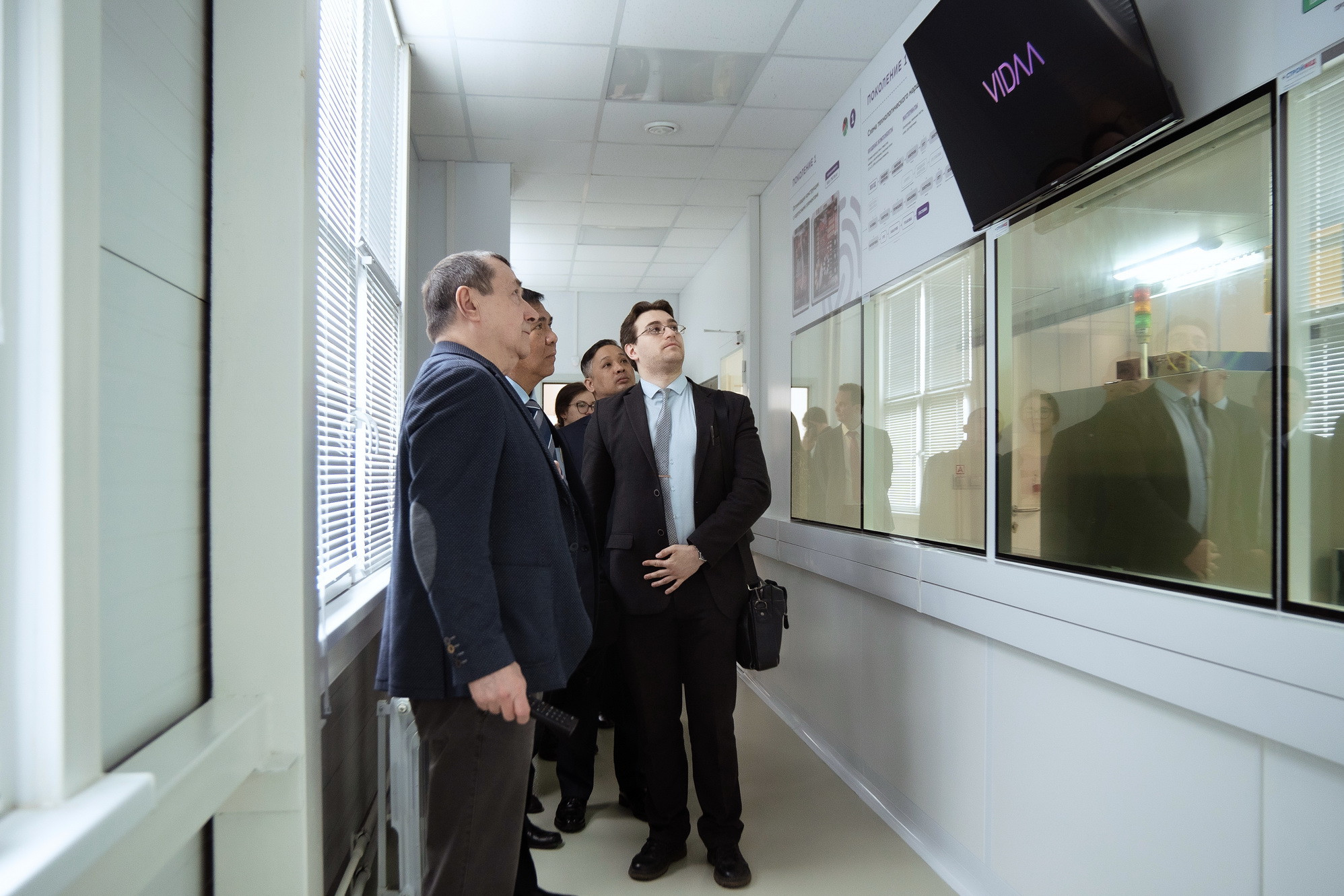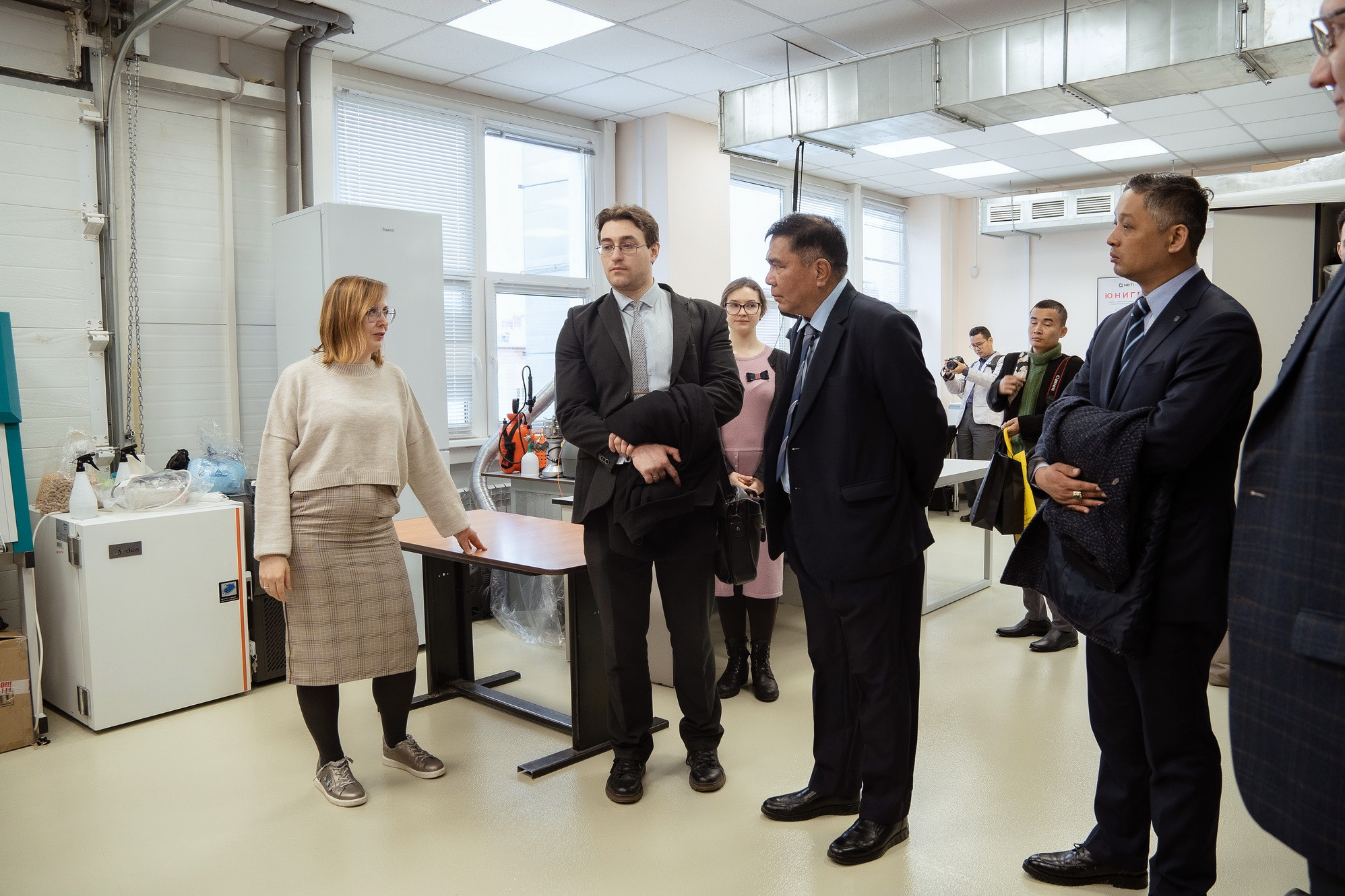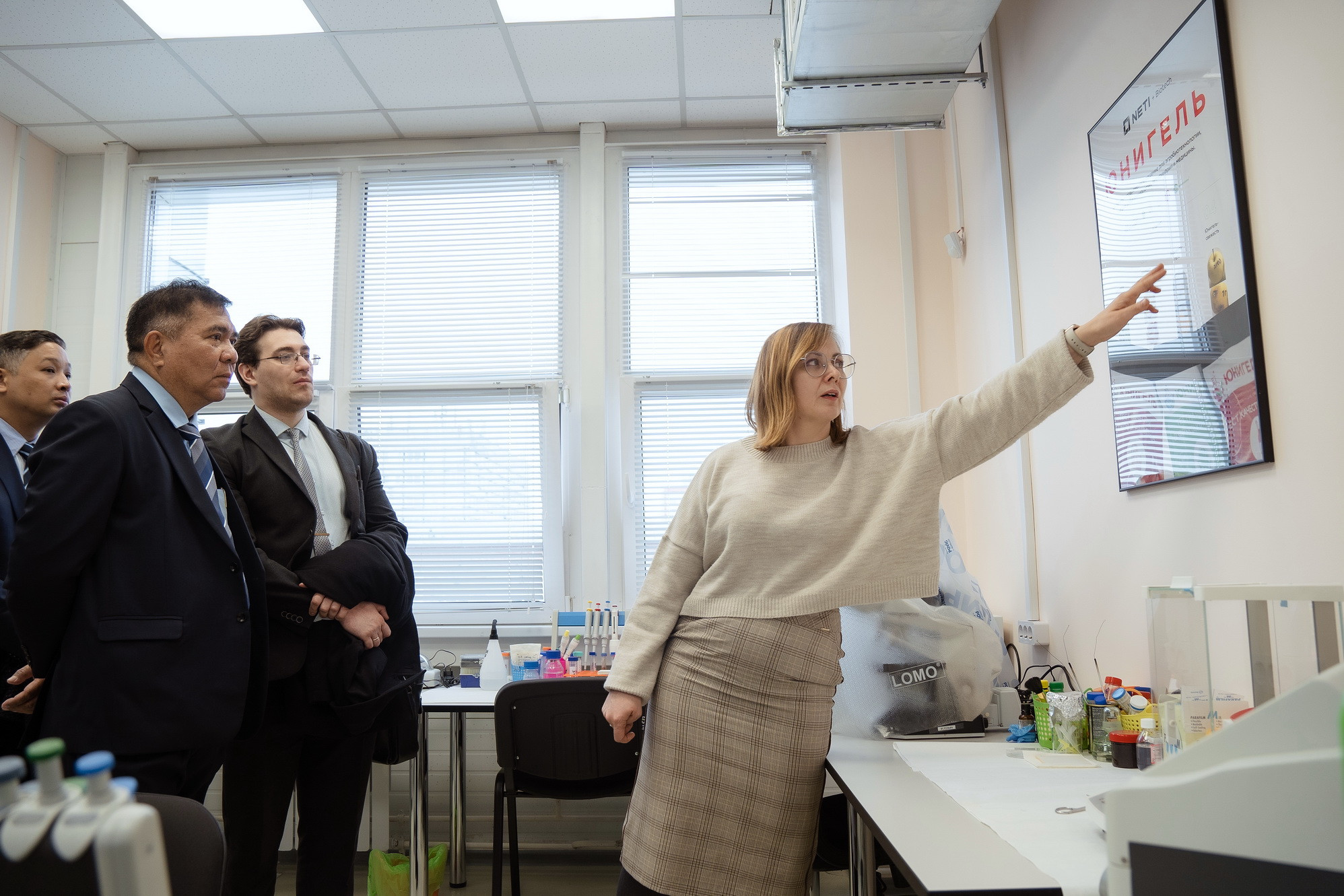 Программа визита министра науки и технологий Республики Союз Мьянма Мьо Тейн Чжо продолжилась знакомством с научно-техническим потенциалом вуза. Члены делегации ознакомились с проектами, реализуемыми НГТУ НЭТИ в рамках программы академического лидерства «Приоритет 2030». Гостям вуза представили разработанные и изготовленные в Дизайн-центре силовой электроники НГТУ НЭТИ два поколения гибридных силовых модулей для систем электропитания аэрокосмических аппаратов. Директор научно-образовательного центра «Технологии биополимеров» Екатерина Литвинова продемонстрировала разработанную командой проекта линейку биоразлагаемых гелей под различные задачи, в числе которых бытовые экспресс-тесты для определения наличия пищевых красителей в напитках и нитратов в сезонных овощах и фруктах, а также безопасные двухкомпонентные гели для продления сохранности овощей и фруктов. Также члены делегации ознакомились с работой лаборатории промышленной робототехники НГТУ НЭТИ.