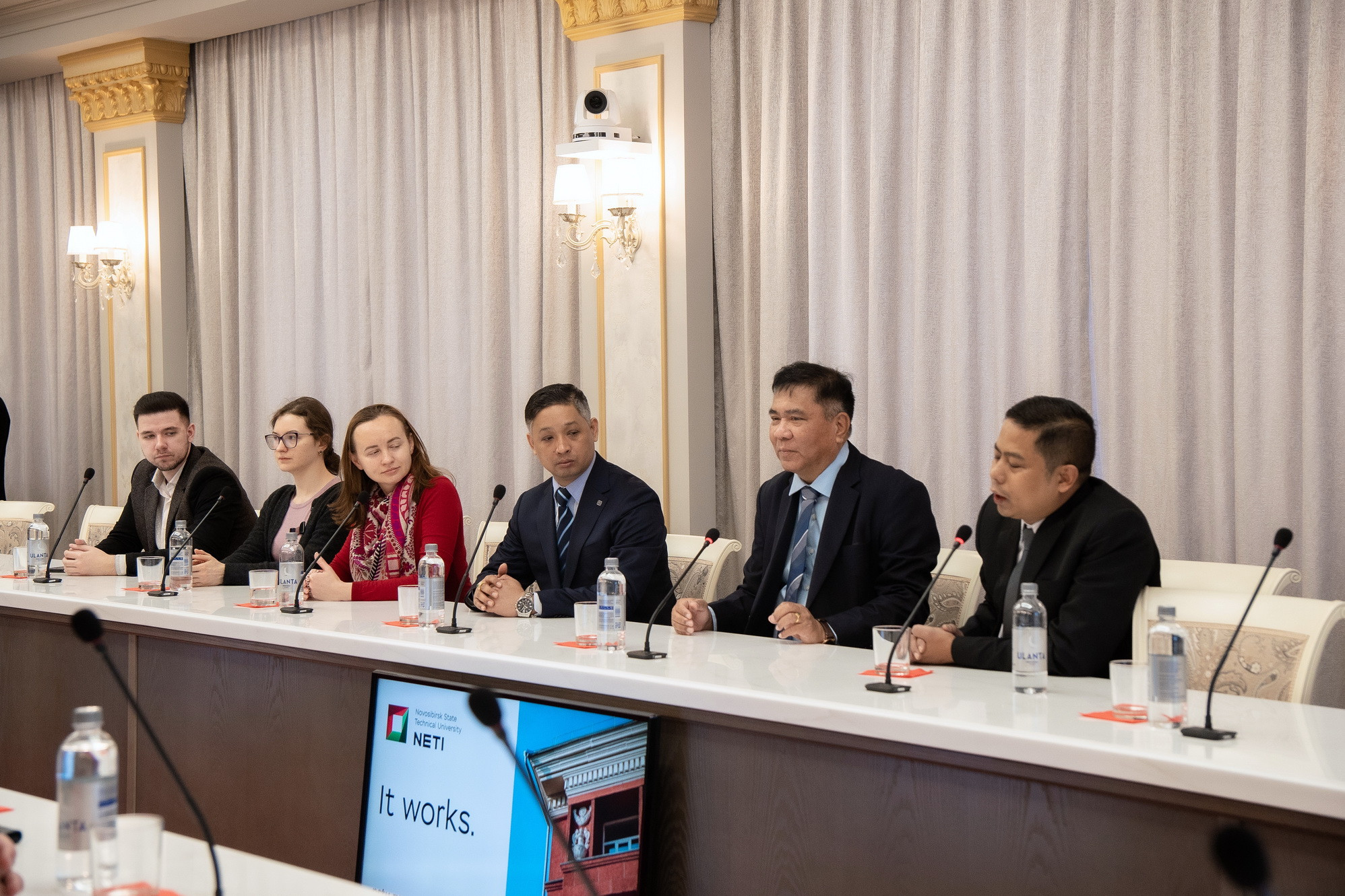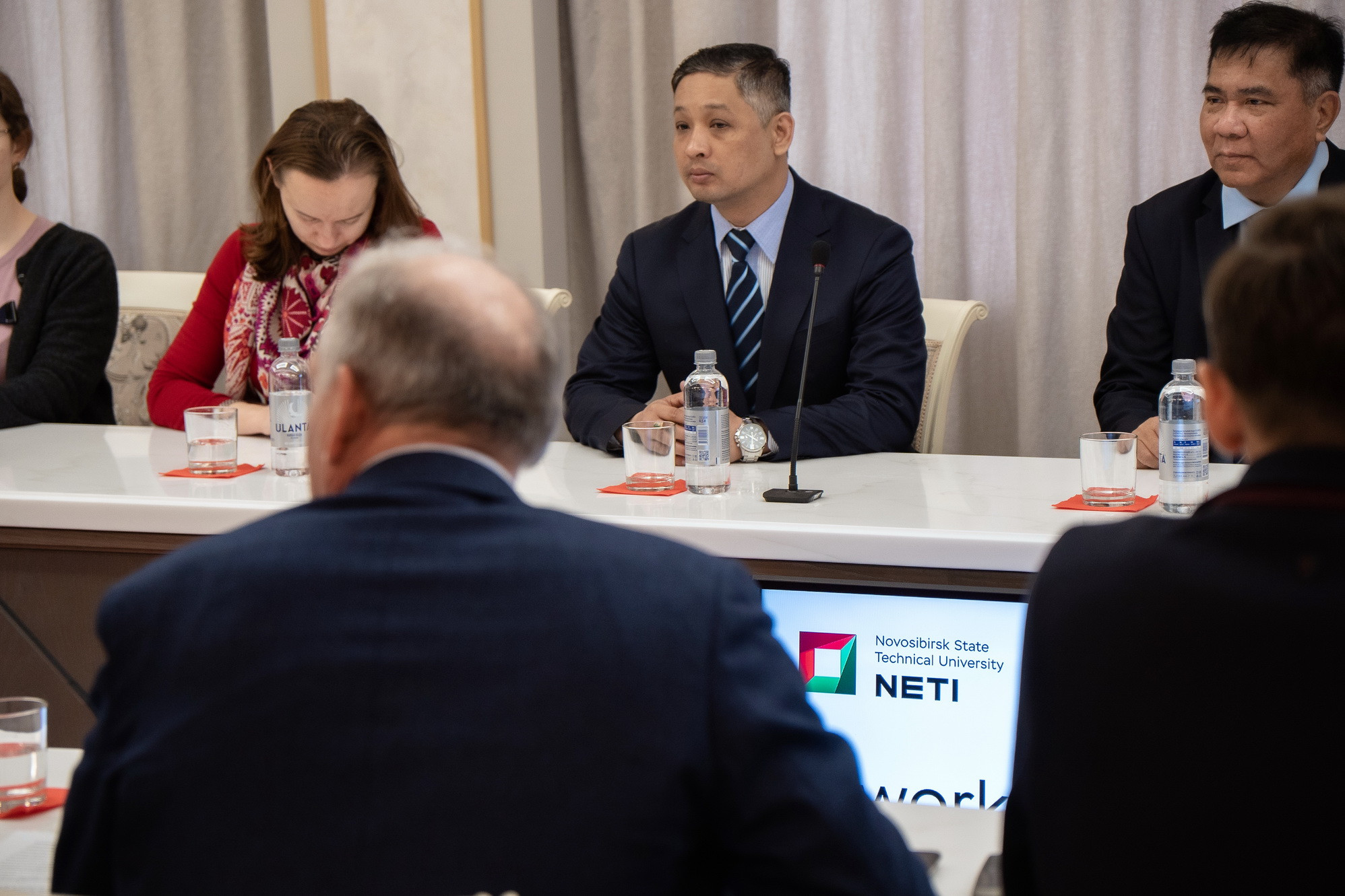 Презентацию вуза и перспективные направления сотрудничества почетным гостям представил ректор НГТУ НЭТИ профессор Анатолий Батаев: «Для нашего университета, как и других крупных вузов России, очень важно поддерживать и развивать международные связи. НГТУ НЭТИ занимает активную позицию по выходу на образовательный рынок Юго-Восточной Азии. Мы рады, что вы выбрали наш вуз для знакомства, и убеждены, что у нас множество перспективных направлений сотрудничества с высшей школой Мьянмы».