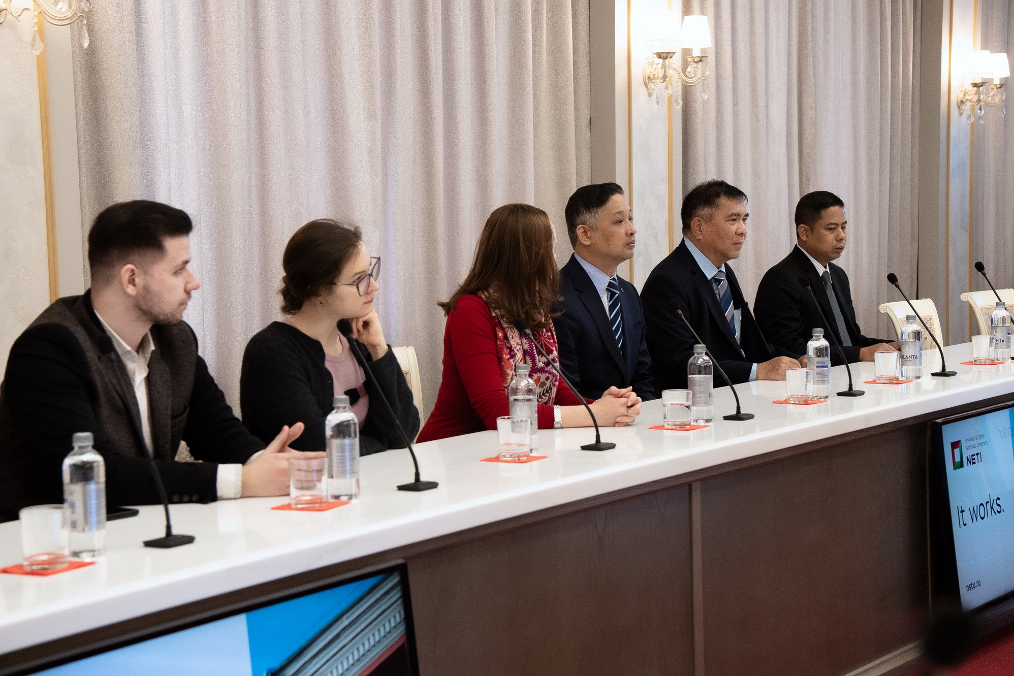 Стороны обсудили перспективы сотрудничества и выразили большую заинтересованность в развитии образовательного и научного взаимодействия. В частности, речь шла о подготовке инженерных кадров для промышленного развития Мьянмы, организации стажировок преподавателей, совместных исследовательских проектах. Проректор по учебной работе НГТУ НЭТИ Сергей Чернов также предложил рассмотреть возможность подписания соглашения между НГТУ НЭТИ и ведущими технологическими университетами Мьянмы.