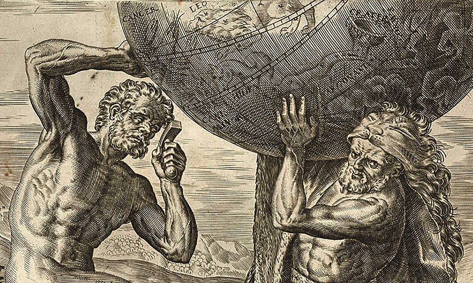 Корнелис Корт. По композиции Франса Флориса. Издатель Иероним Кок. «Атлант передает Геркулесу небесный свод». Лист из серии «Подвиги Геркулеса» 1563. Фрагмент.