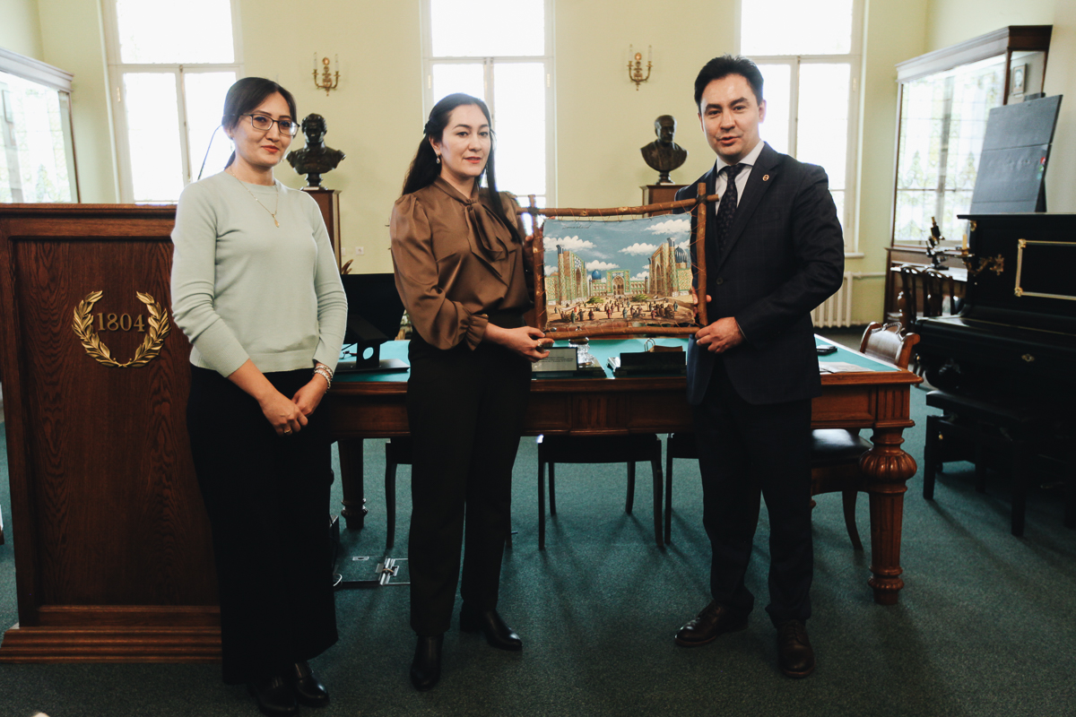 По окончании церемонии, гости передали в дар университету картину с изображением города Самарканда.