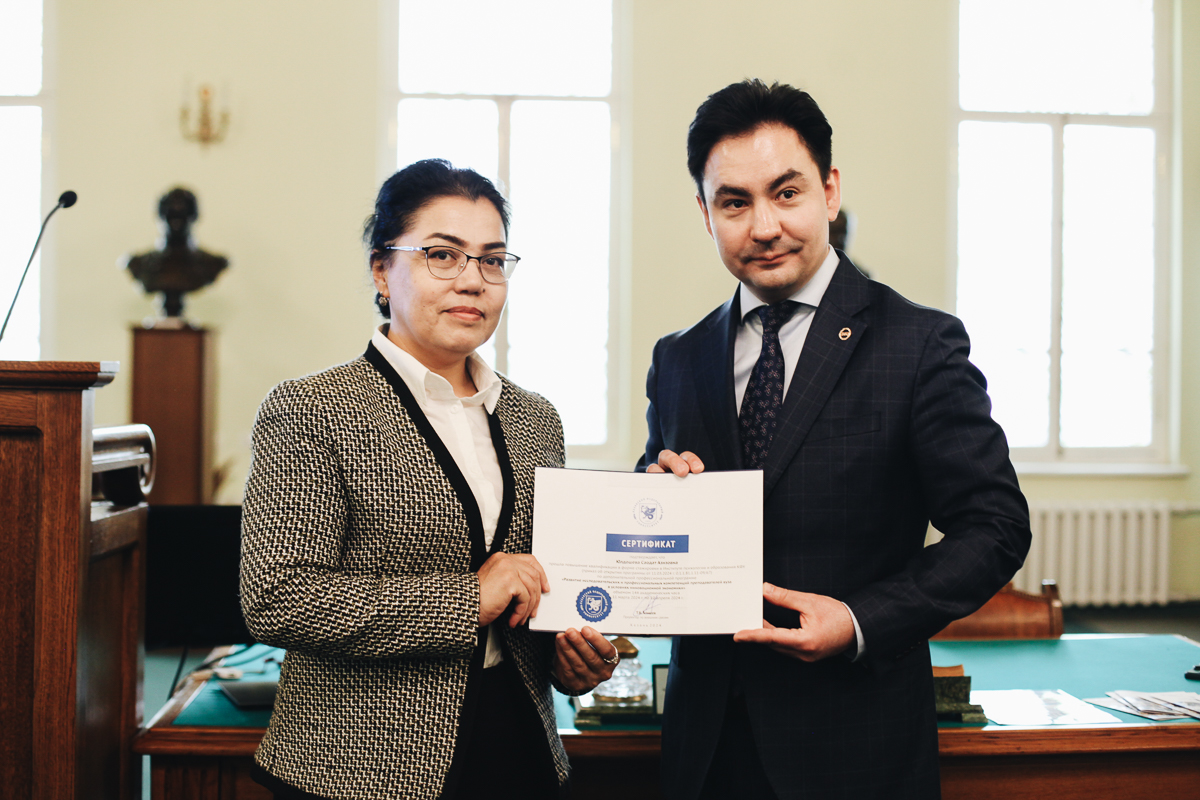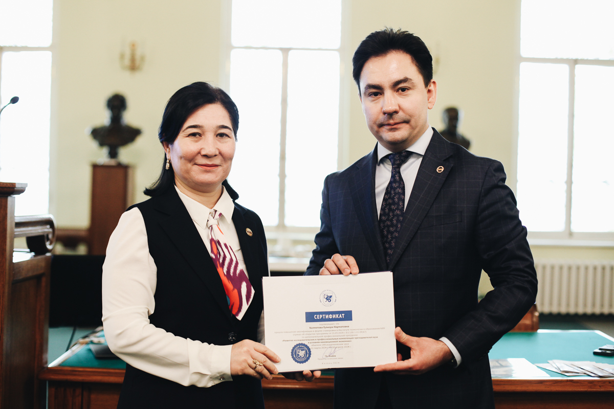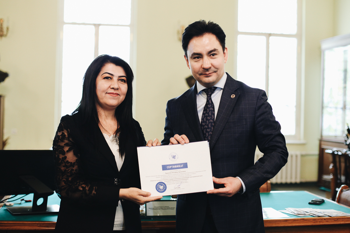 В Казанском федеральном университете состоялась церемония вручения сертификатов о прохождении стажировки по программе «Развитие исследовательских и профессиональных компетенций вуза в условиях инновационной экономики» для профессорско-преподавательского состава вузов Республики Узбекистан. Стажировка прошла на базе Института психологии и образования КФУ.