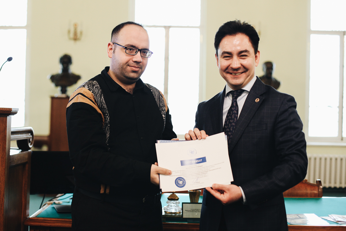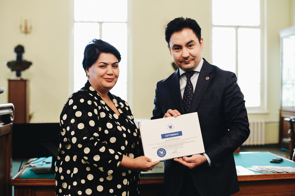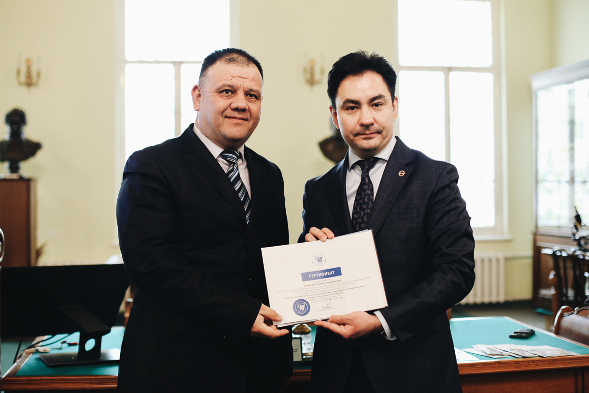 Сертификаты о прохождении стажировки вручил проректор по внешним связям КФУ Тимирхан Алишев.