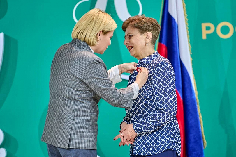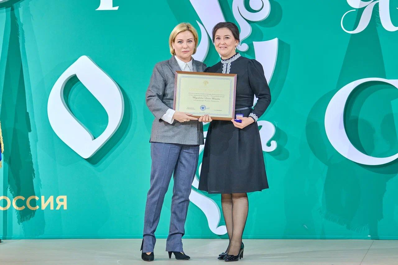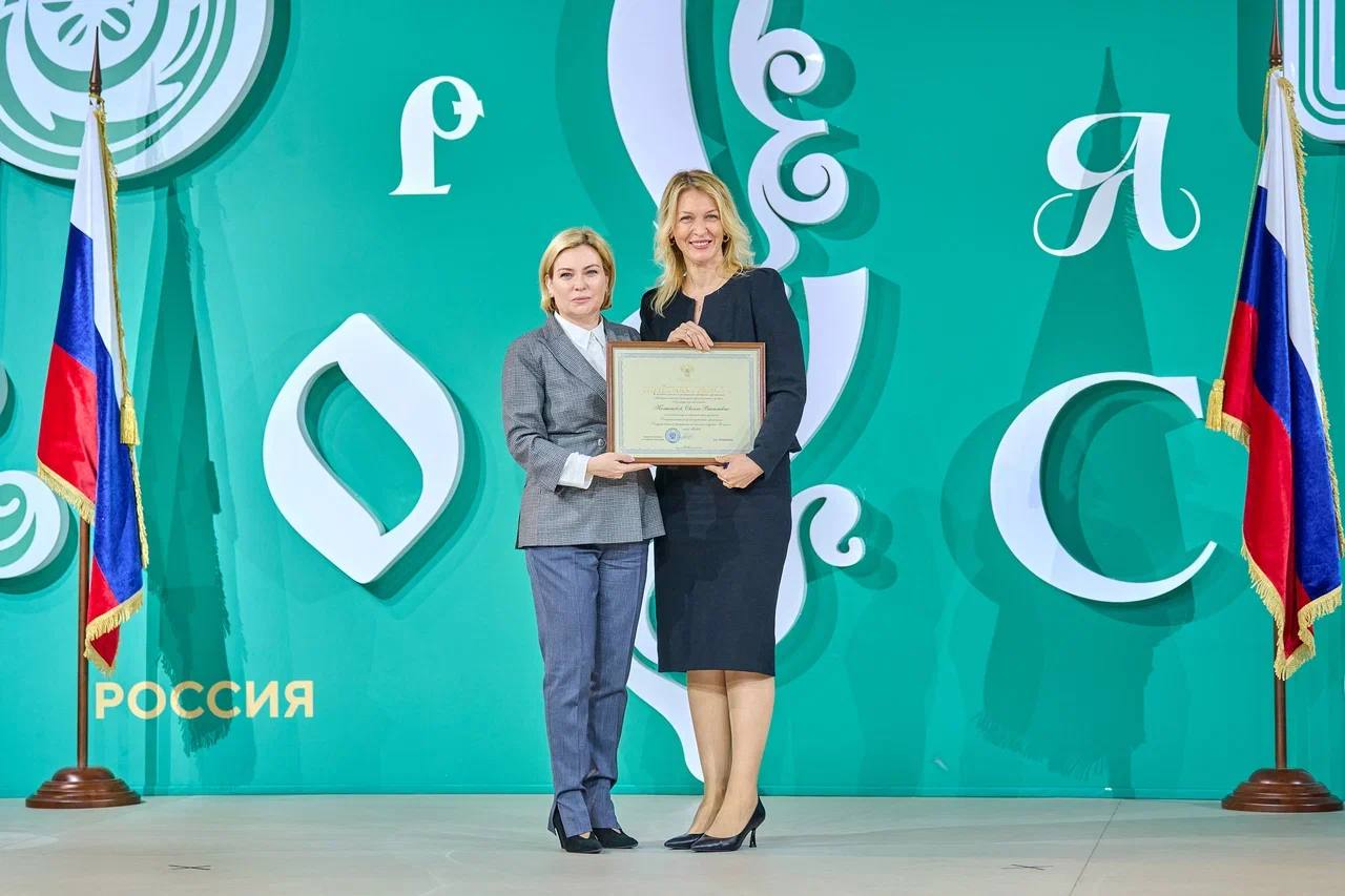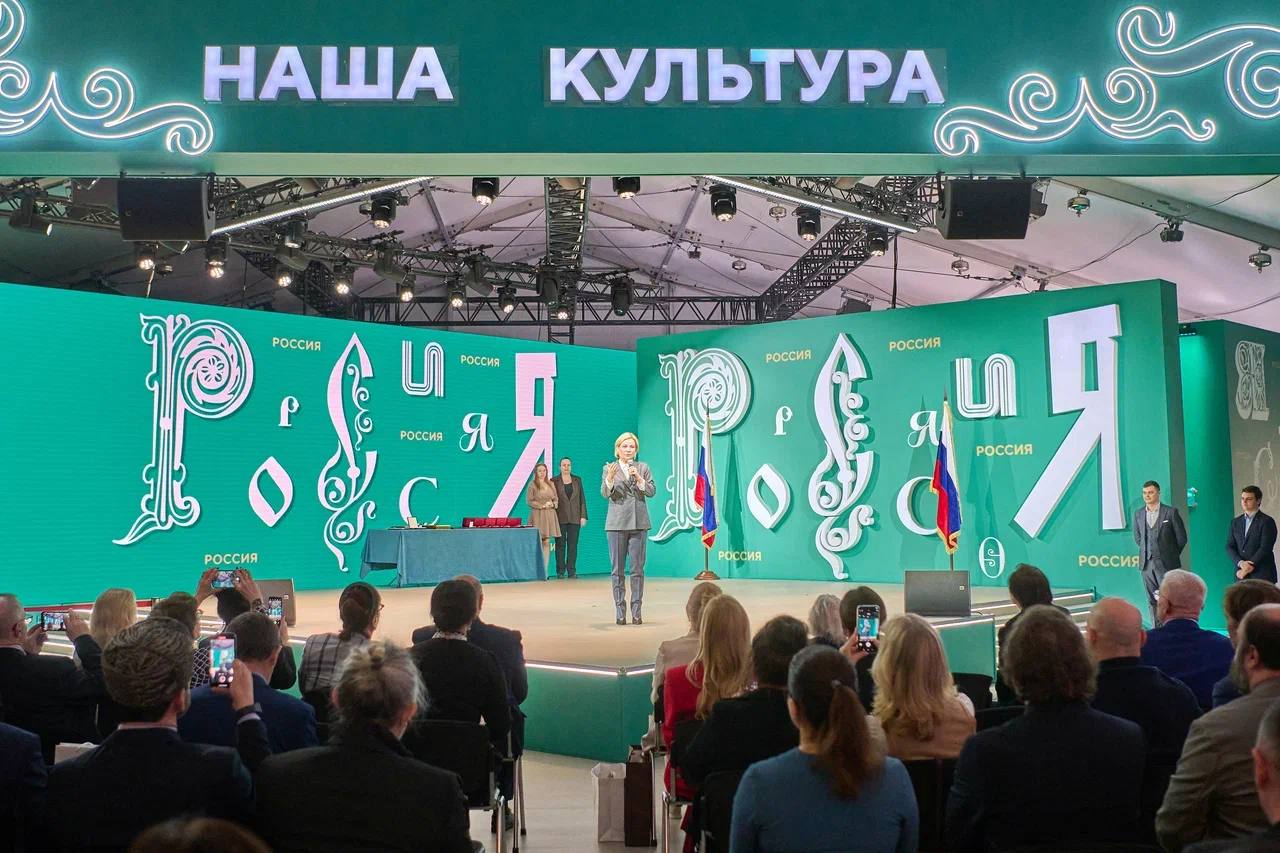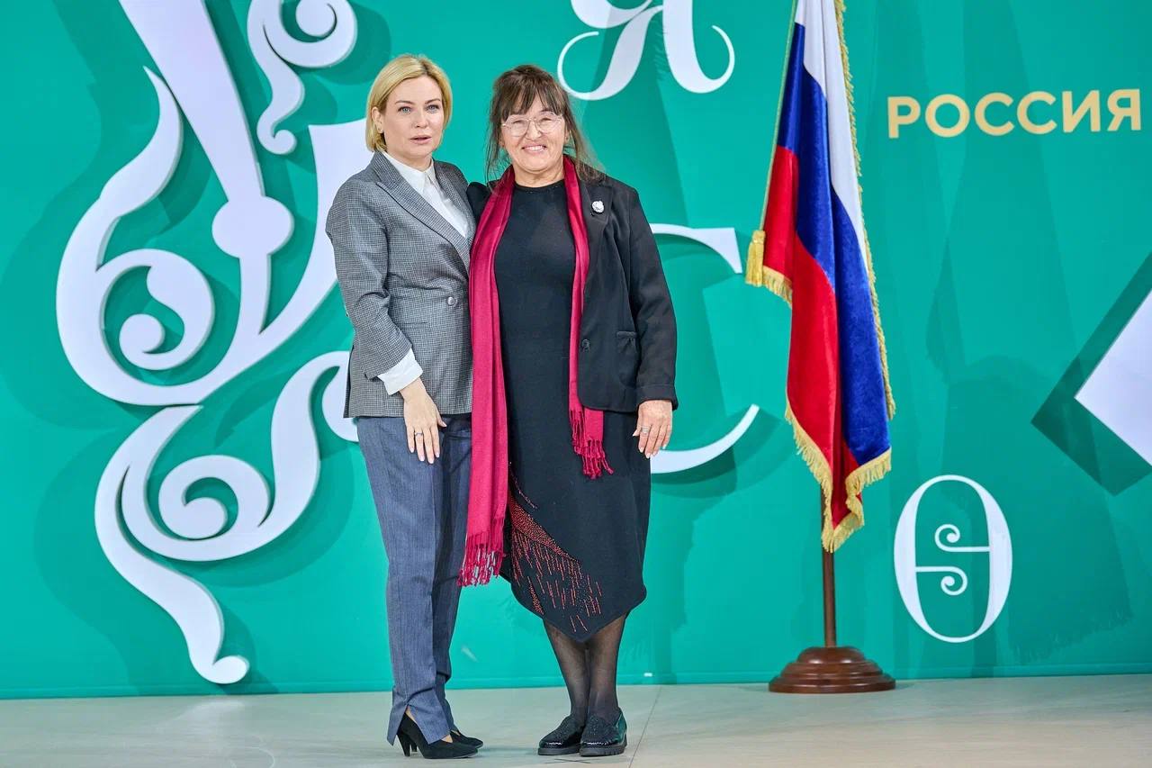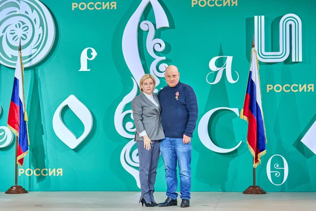 Министр культуры Российской Федерации Ольга Любимова вручила государственные и ведомственные награды 26 выдающимся деятелям культуры и коллективам. Торжественная церемония прошла в павильоне ведомства «Наша культура» в рамках Международной выставки-форума «Россия» на ВДНХ. «На этой сцене, в павильоне «Наша культура» на ВДНХ, проведено более 300 мероприятий. Мы встречаемся здесь с нашими зрителями, с профессиональным сообществом, делимся радостями и обсуждаем сложности, отмечаем общие праздники. Одна из уже традиционных причин собраться – вручение государственных наград», – отметила в приветственном слове глава Минкультуры России. Ордена Дружбы удостоена артистка Московского государственного театра «Ленком Марка Захарова» Татьяна Кравченко. Орденом «За заслуги в культуре и искусстве» награждены писатель, член Творческого совета Ассоциации союзов писателей и издателей России Павел Басинский и заведующая кафедрой Московской государственной академии хореографии Инга Воронина. Медалью ордена «За заслуги перед Отечеством» I степени отмечена преподаватель Детской школы искусств имени Е.В. Светланова Галина Подольская, медалью «За труды в культуре и искусстве» – артисты Московского Художественного академического театра имени А.П. Чехова Артем Быстров и Олег Тополянский. Почетное звание «Заслуженный артист Российской Федерации» присвоено артисту оригинального жанра Росконцерта Амаяку Акопяну, артисту-дрессировщику, советнику гендиректора Росгосцирка Владиславу Гончарову, члену Союза кинематографистов Российской Федерации Олесе Судзиловской, артистке МХТ им. А.П. Чехова Юлии Чебаковой, артистам Московского театра «Мастерская П.Н.Фоменко» Анатолию Горячеву, Алексею Колубкову и Никите Тюнину. Главный архитектор Центрального парка культуры и отдыха имени М. Горького Лидия Леонтьева получила звание «Заслуженный архитектор Российской Федерации», режиссер-постановщик Мастерской П.Н. Фоменко Иван Поповски – «Заслуженный деятель искусств Российской Федерации», художественный руководитель Детской музыкальной хоровой школы «Весна» имени А.С. Пономарева Надежда Аверина и заместитель гендиректора по зоологической работе Московского государственного зоологического парка Алексей Суслов – «Заслуженный работник культуры Российской Федерации». Почетной грамотой Президента Российской Федерации отмечена и. о. ректора Московской государственной академии хореографии Марина Леонова. Благодарность главы государства объявлена коллективам МГАХ и Росконцерта, благодарность Правительства Российской Федерации – заместителю муфтия Централизованной религиозной организации Духовного управления мусульман Карачаево-Черкесской Республики Магомету Батчаеву, заместителю муфтия Централизованной религиозной организации Духовное собрание мусульман России Денису Мустафину и ректору религиозной организации – духовной образовательной организации высшего образования Российского исламского университета Центрального духовного управления мусульман России Артуру Сулейманову. Нагрудный знак Министерства культуры Российской Федерации «За вклад в российскую культуру» глава ведомства вручила директору Музея Победы Александру Школьнику. Почетные грамоты Минкультуры России получили советник отдела общественных