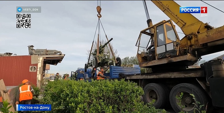 Многотонное зенитное орудие медленно поднимается на тросах. Рабочие со всей осторожностью его страхуют, ведь памятник погибшим ростовским зенитчицам в годы Великой Отечественной войны простоял нетронутым целых 39 лет.