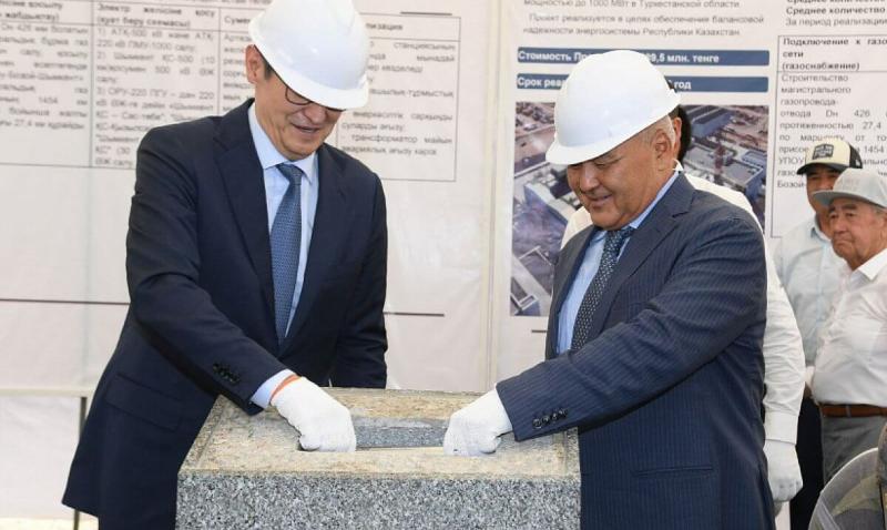 В фундамент электростанции заложили капсулу времени с подписями главы фонда «Самрук-Казына» и акима Туркестанской области Умирзака Шукеева.