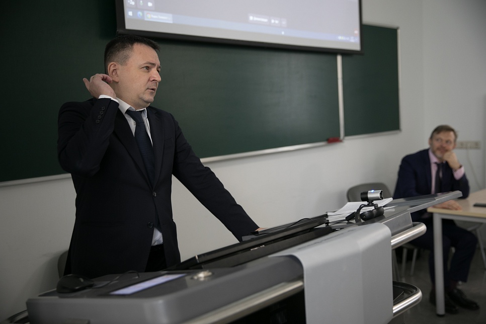 В заседании кафедры приняли участие: директор департамента Минприроды России Евгений Танин, заместитель директора ФГКУ «Росгеолэкспертиза» Константин Горохов, президент ООО «ПравоТЭК» Виктор Нестеренко, проректор по учебной работе Владимир Кошелев, сотрудники кафедры, аспиранты и студенты университета.
