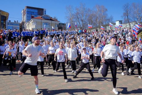 В субботу, 20 апреля, более 500 кировчан присоединились к установлению рекорда России по самой массовой зарядке в рамках форума-выставки «Россия». Зарядку вместе с другими регионами-участниками акции наши жители выполняли у веерной лестницы на набережной Грина. В Москве участниками стали более 5 тысяч человек.
