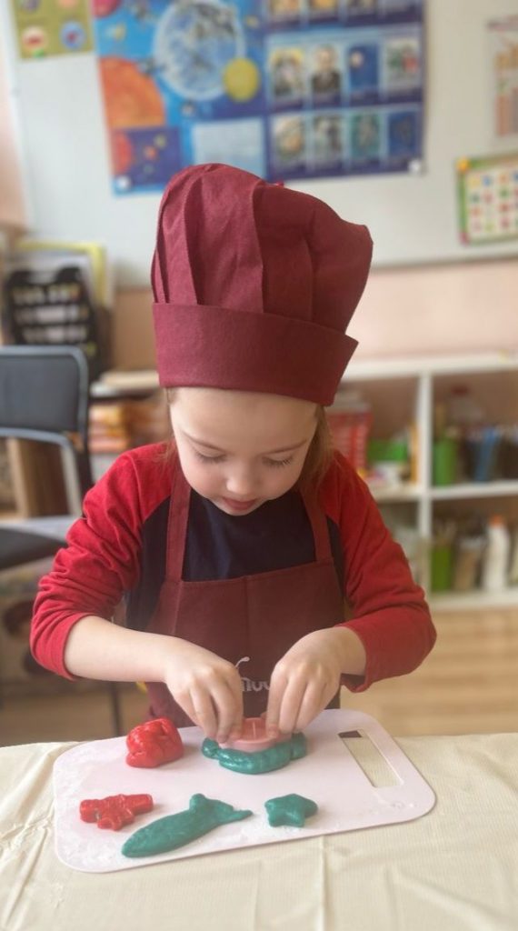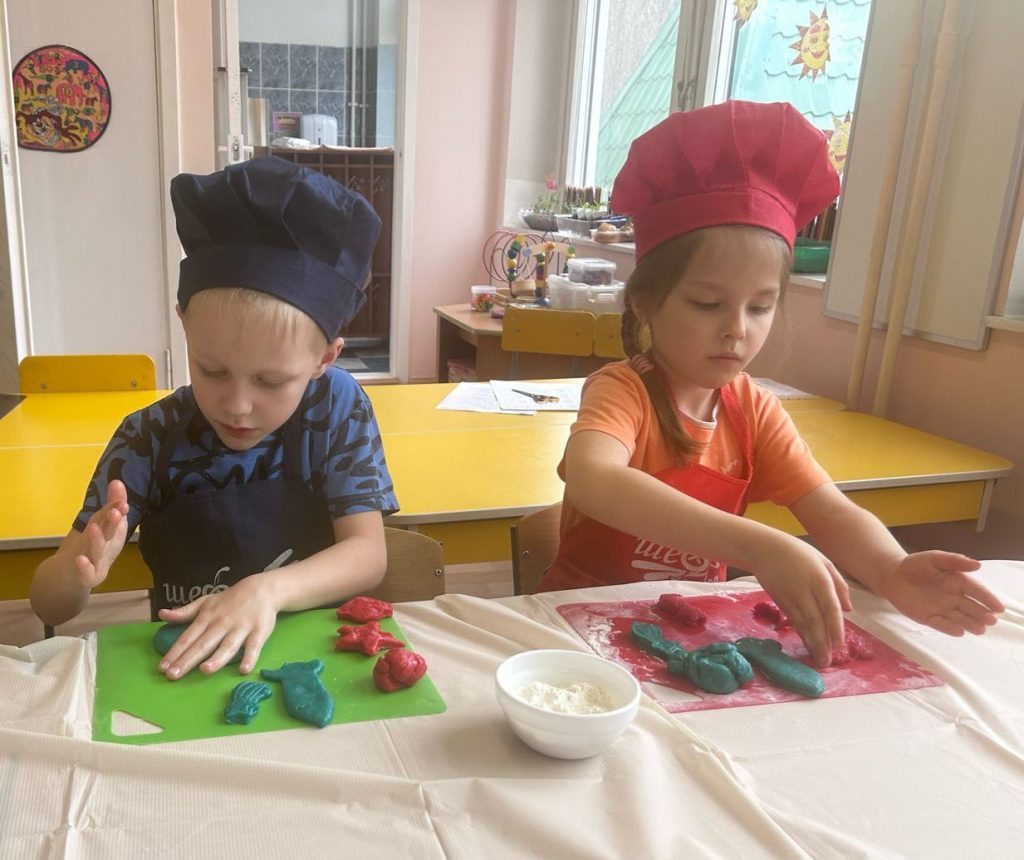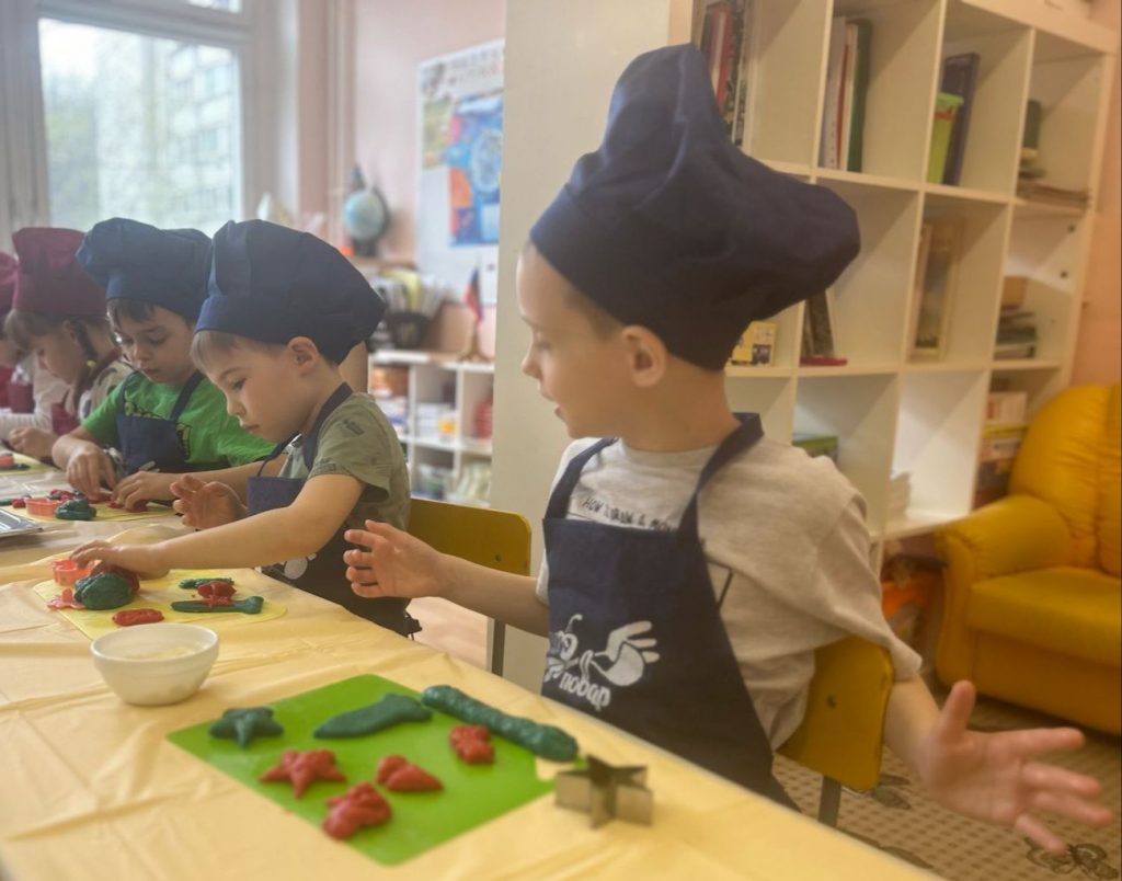 В детском саду Школы №1944 прошел творческий мастер-класс для воспитанников средней группы. Дети перевоплотились в настоящих кондитеров и научились готовить печенье в виде звезд, планет и космических ракет.