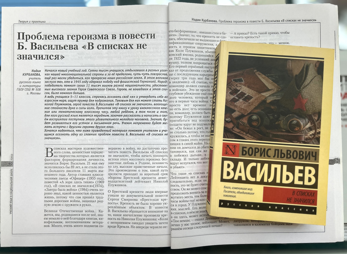 Роман «В списках не значился» Бориса Васильева впервые вышел в журнале «Юность» (1974 г.). В основе - подлинная история обороны Брестской крепости и судьбы людей, которые с честью встали на защиту Родины. О реальных прототипах основных героев рассказывает публикация в сборнике «Память о великой Победе». В 1975 г. на сцене Ленкома режиссером Марком Захаровым был поставлен спектакль «В списках не значился», который пользовался большой популярностью. В экспозиции представлен текст этой пьесы в 2-х частях.