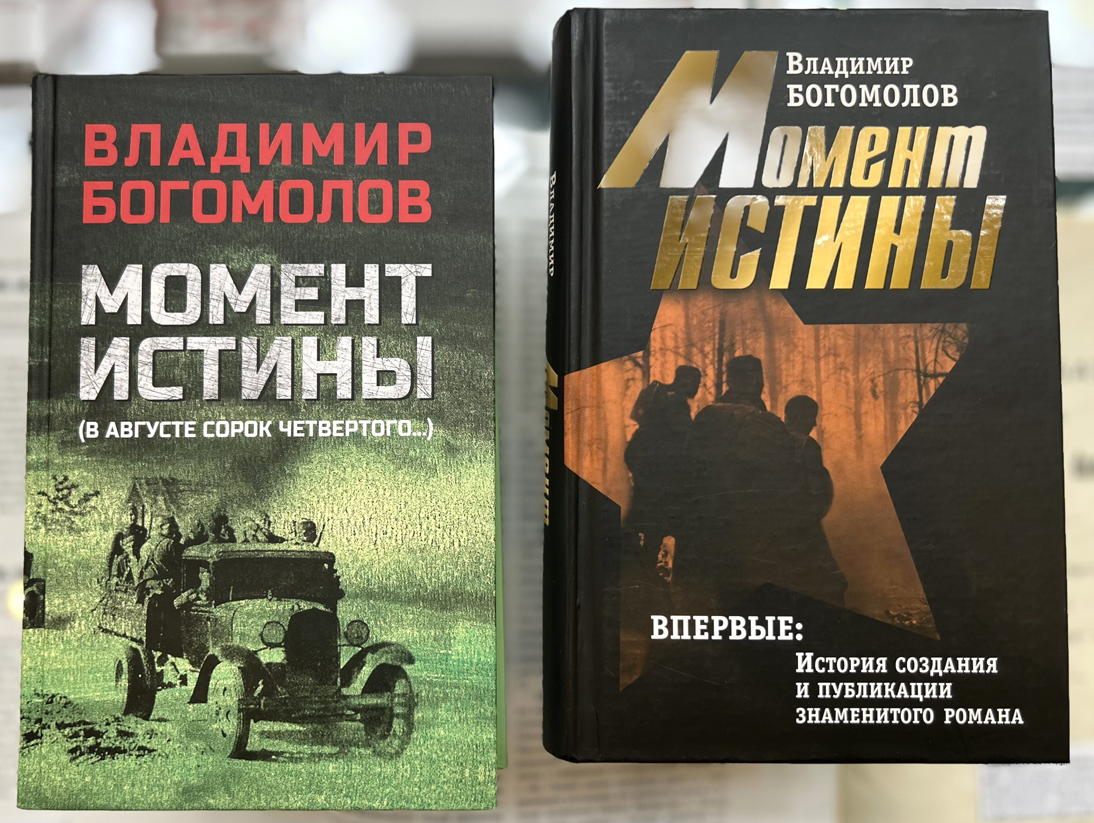 Произведения Владимира Богомолова (1926-2003) вошли в золотой фонд русской литературы ХХ в., а знаменитый роман «Момент истины (В августе сорок четвертого…)» признан одним из лучших на военную тему. Он посвящен суровым будням контрразведчиков, действующих на освобожденной от немецко-фашистских захватчиков территории в Западной Белоруссии. Книга, написанная в увлекательной приключенческой форме, основана на реальных документах и фактах. Произведение переиздавалось много раз общим тиражом в несколько миллионов экземпляров и было переведено более чем на 30 языков. Также посетители смогут ознакомиться с уникальными материалами, подготовленными вдовой писателя Раисой Глушко. В однотомном издании 2008 г. приводится текст и история создания «В августе 44-го», архив Владимира Богомолова, его рабочие тетради и переписка с читателями. Представлена первая публикация романа в журнале «Новый мир» (1974 г.).