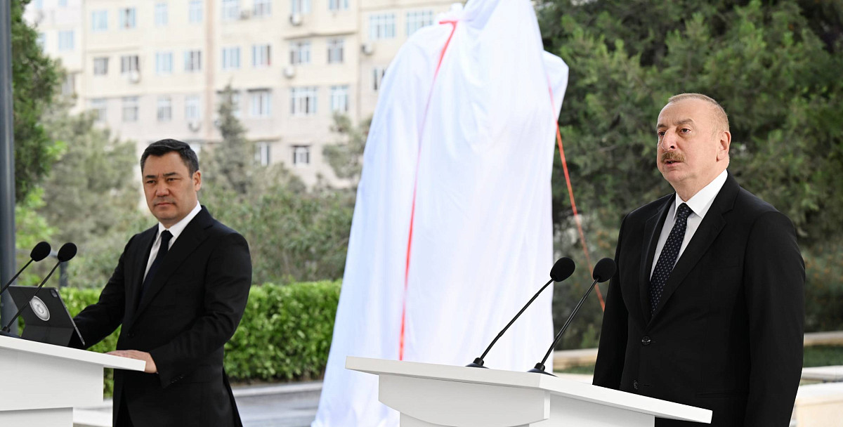 24 апреля Президент Азербайджанской Республики Ильхам Алиев и Президент Кыргызской Республики Садыр Жапаров приняли участие в церемонии открытия памятника выдающемуся кыргызскому писателю Чингизу Айтматову в Баку.