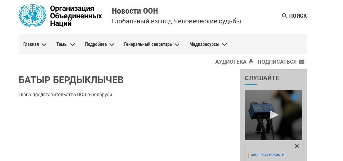 На сайте ООН у доктора тоже есть своя страница, но там указано только то, что он был главой представительства ВОЗ в Белоруссии. Далее - чистый лист.