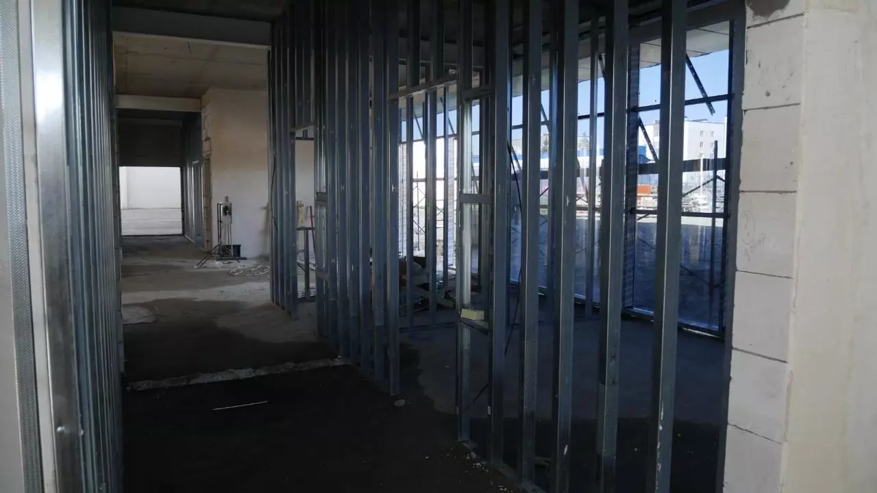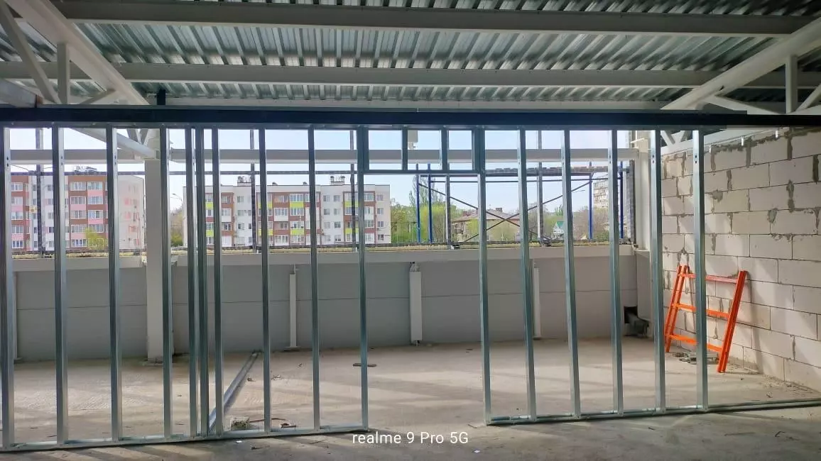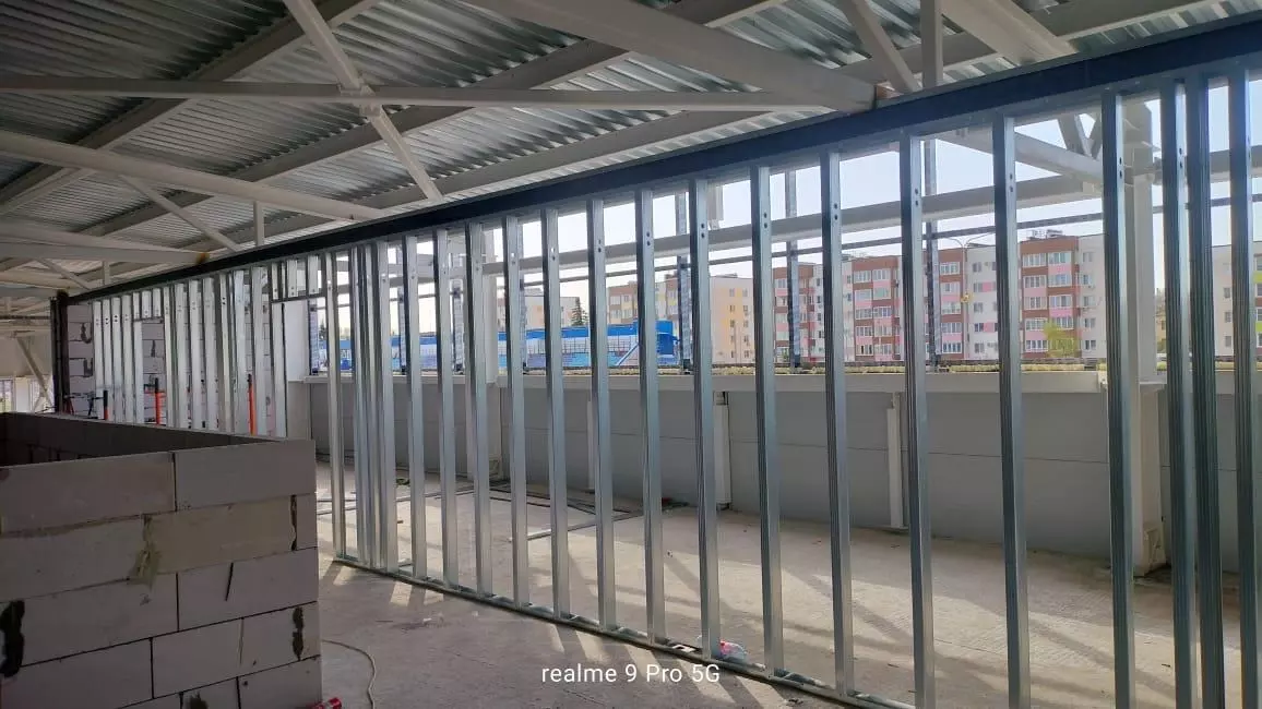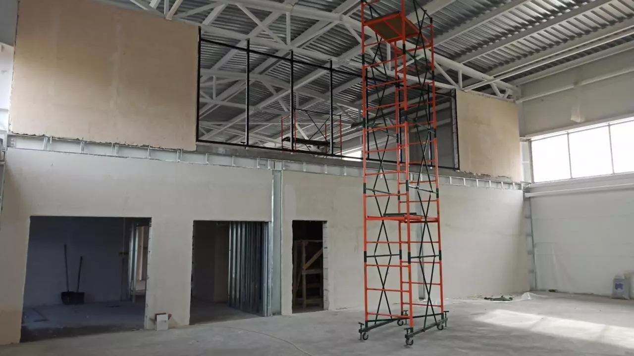 Параллельно с этим рабочие продолжают возводить внутренние перегородки, штукатурить стены, а также приступили к устройству внутренних инженерных систем — систем электроснабжения, теплоснабжения и вентиляции.