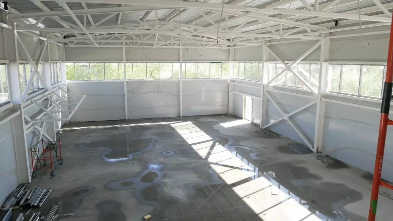 В настоящее время специалисты остеклили 440 квадратных метров площади, что составляет порядка 90 процентов от необходимого объема в 490 квадратных метров.