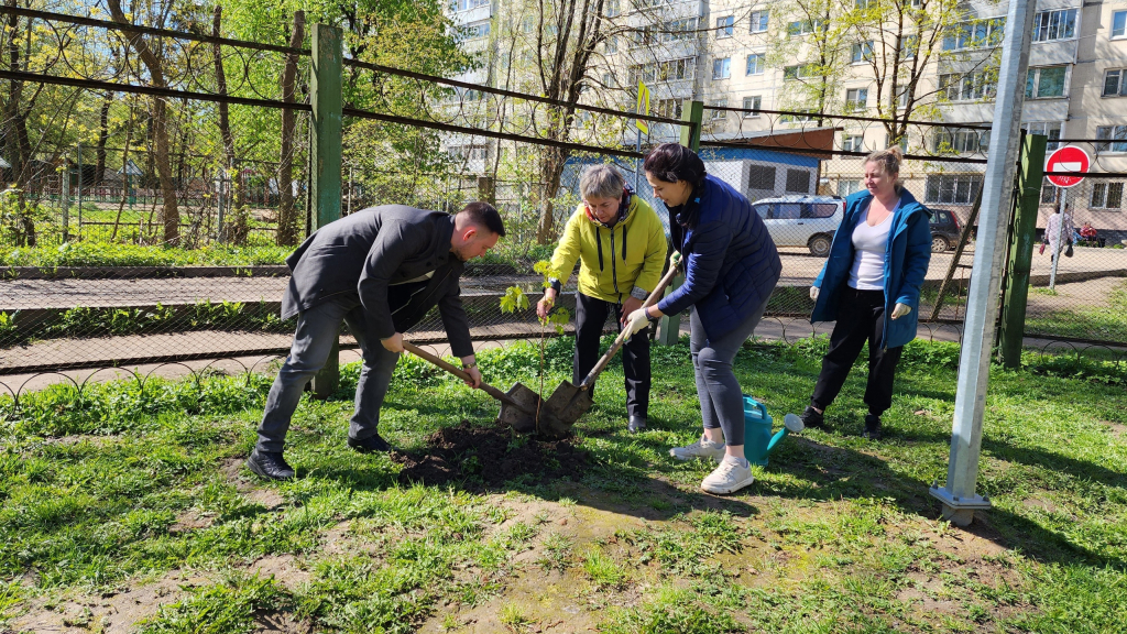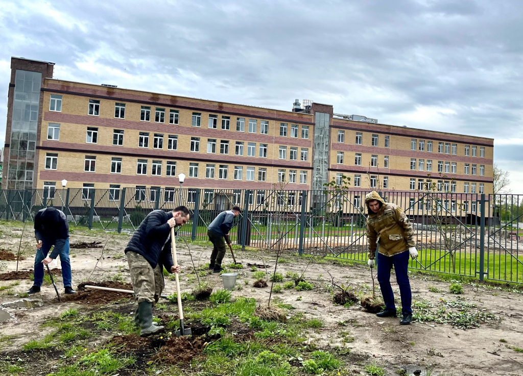 Юлия Прохоренкова вместе с жителями «Соловьиной рощи» приняла участие в озеленении территории возле нового многопрофильного лицея.