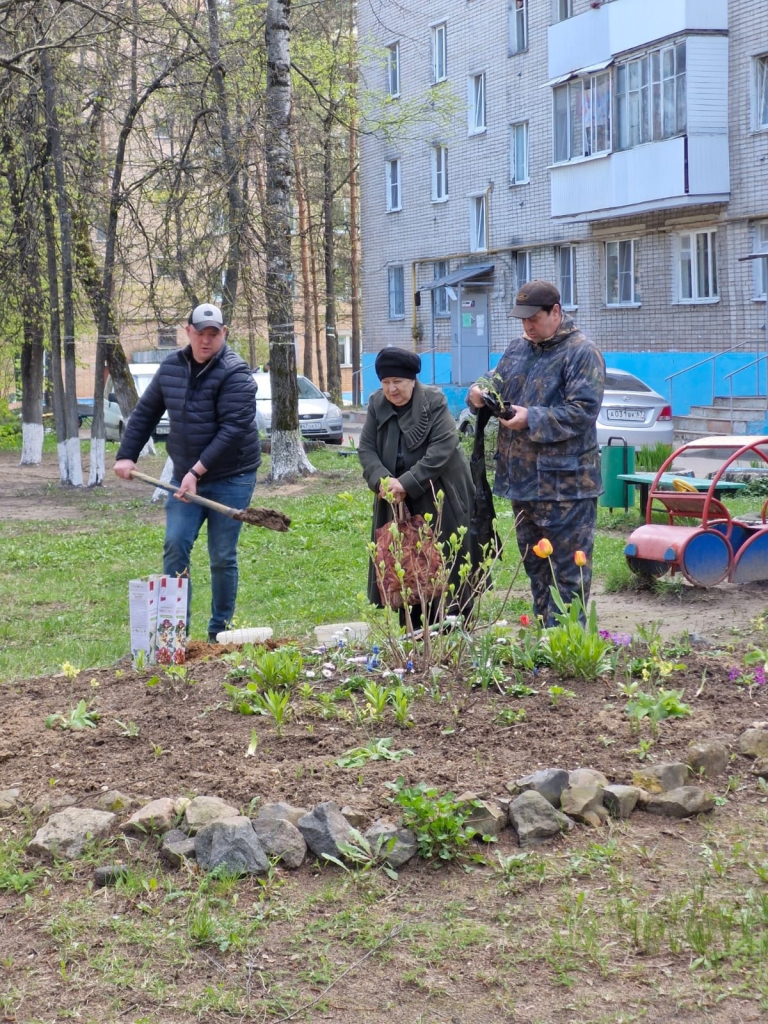 Депутаты горсовета Михаил Николаенков и Виталий Паненкопровели работу по высадке многолетних цветов и кустарников, а также вместе с активными жителями домов на улице Фрунзе побелили деревья и обрезали сухие ветки.