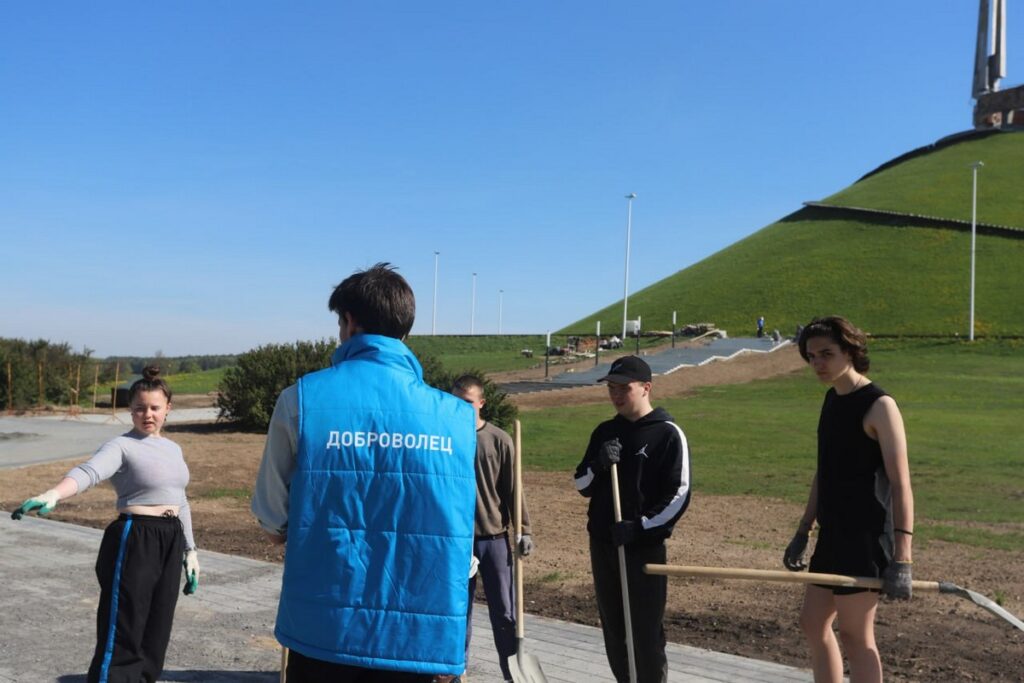 Студенты из России и Беларуси помогали в благоустройстве Кургана Славы