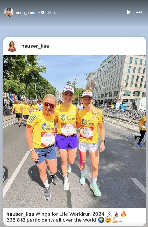 Биатлонистки Доротея Вирер, Лиза Тереза Хаузер и Анна Гандлер поучаствовали в благотворительном забеге Wings for Life 5 мая.