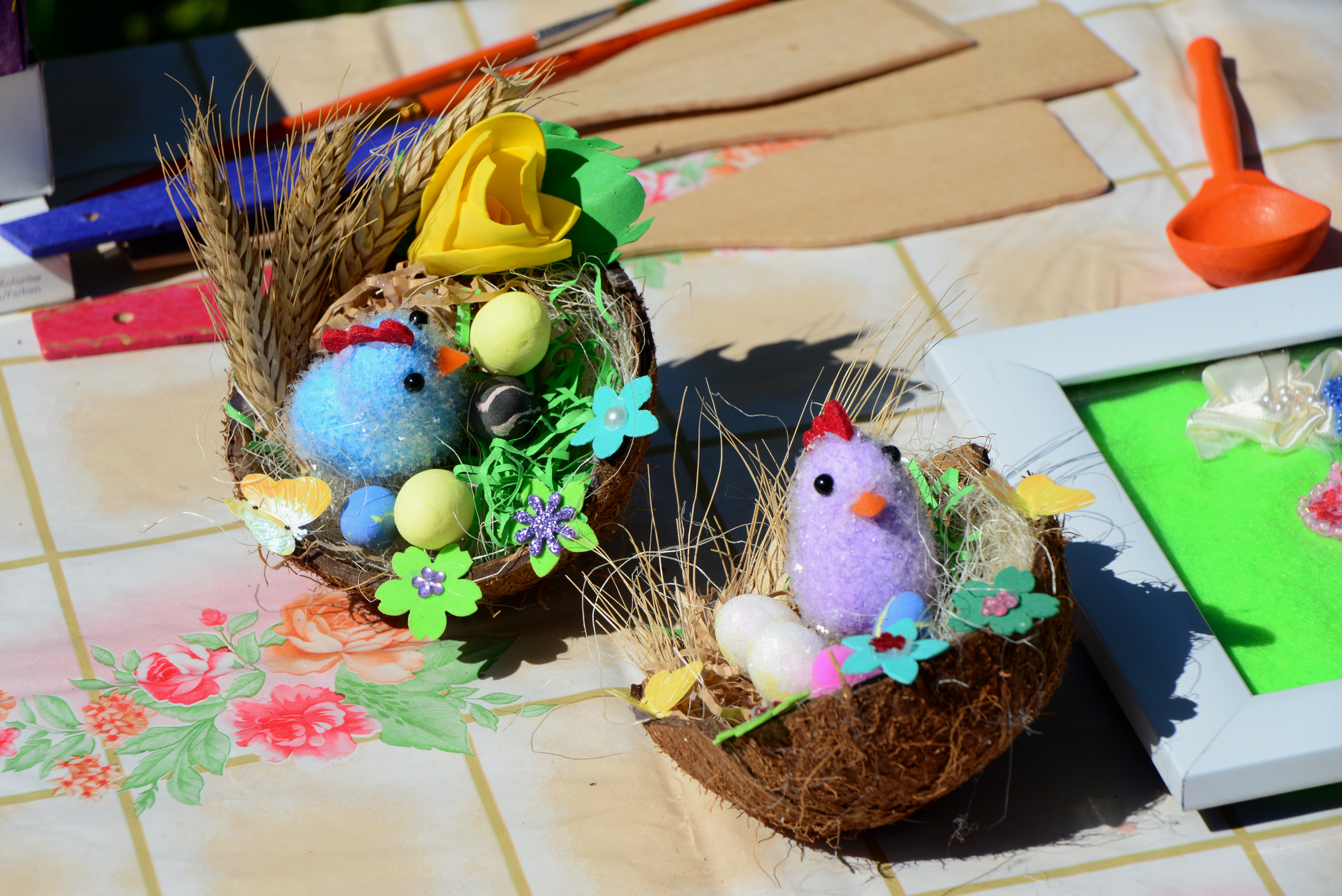 Весь декор на фасаде – балясины, ромбики, узорно выложенные кокошники, – всё делалось вручную из объёмного кирпича и белого камня. Изображения святых на фасаде работы профессионального скульптора. Всего 13 барельефов, в том числе - святого князя Владимира, княгини Ольги, Сергия Радонежского, Алексий Московского. Стены и своды нижнего храма расписывали художники-иконописцы. В настоящий момент продолжается роспись храма и работы по сооружению и церковному убранству. Заказан иконостас.