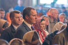На ступенях храма Светлану, Ольгу и Виталия встретили губернатор Вячеслав Гладков и митрополит Белгородский и Старооскольский Иоанн.