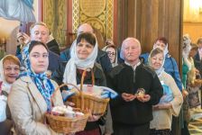 По заамвонной молитве было совершено освящение Артоса, куличей и пасок.