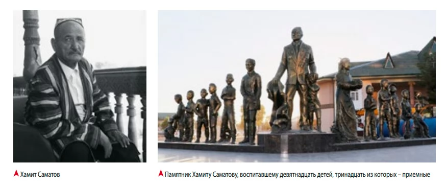 Хорошо известен подвиг Хамита Саматова из Каттакургана – города близ Самарканда, воспитавшего девятнадцать детей, тринадцать из которых – приемные. Он добровольцем ушел на фронт в 1941 году в составе 90-й отдельной узбекской бригады, служил заместителем командира взвода разведки, защищал Сталинград, участвовал в освобождении Украины, а при форсировании Днепра был тяжело ранен. В ноябре 1943 года был комиссован. Вернувшись в родной город и увидев, в каком бедственном положении находятся дети, потерявшие родителей во время войны, он, будучи неженатым, собрал в своем доме 13 детей разных национальностей. Вскоре многодетный отец женился и в его семье родилось еще шестеро детей. После войны, повзрослевшие, они разъехались по всей стране, кто-то из них нашел своих родителей, родных и близких, но никто не забыл Хамита и Санобар Саматовых, заменивших им родителей. За свой человеческий подвиг Хамид Саматов награжден орденом Трудового Красного Знамени, о нем написаны книги, киностудиями Москвы, Украины, ГДР и Узбекистана сняты документальные фильмы. Заботу о детях проявляло и государство. В начале 1942 года в Самарканде функционировало 10 детских домов, в которых воспитывалось 1512 детей, в том числе 590 - эвакуированных. В Самарканде работал детский дом для польских детей, а также был интернат для 120 испанских детей, переселенных из Москвы. К концу войны число детских домов в Самаркандской области возросло до сорока, число же воспитанников составляло свыше десяти тысяч человек.
