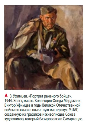 Творческие замыслы всех художников теперь были подчинены одной общей цели - показать героику фронта и тыла. Сергей Герасимов представил написанное в Самарканде свое знаменитое ныне полотно «Мать партизана», Павел Беньков создал картину «Последние известия», Лев Буре - картину «Клянёмся отомстить». Вместе с группой товарищей-художников профессор Дмитрий Моор выпустил за время пребывания в Самарканде более 70 плакатов на тему обороны. В агитационной мастерской города от Союза художников Узбекистана трудились сразу две бригады, возглавляемые Львом Буре и Михаилом Аветовым; к этой деятельности были еще привлечены самаркандские поэты и писатели. Картины художников экспонировались в госпиталях и военных частях, в музеях и колхозах, а также вывозились в Ташкент и Москву. - Мастера кисти с честью выполнили свой долг перед Родиной, - говорит член Творческого союза художников, историк-краевед Александр Галак. - Активная и плодотворная работа в годы войны способствовала укреплению сил и веры в победу. И хотя художники находились далеко от фронта, это не помешало им быть соучастниками военных событий. Муза живописи звучала с особой силой и накалом.