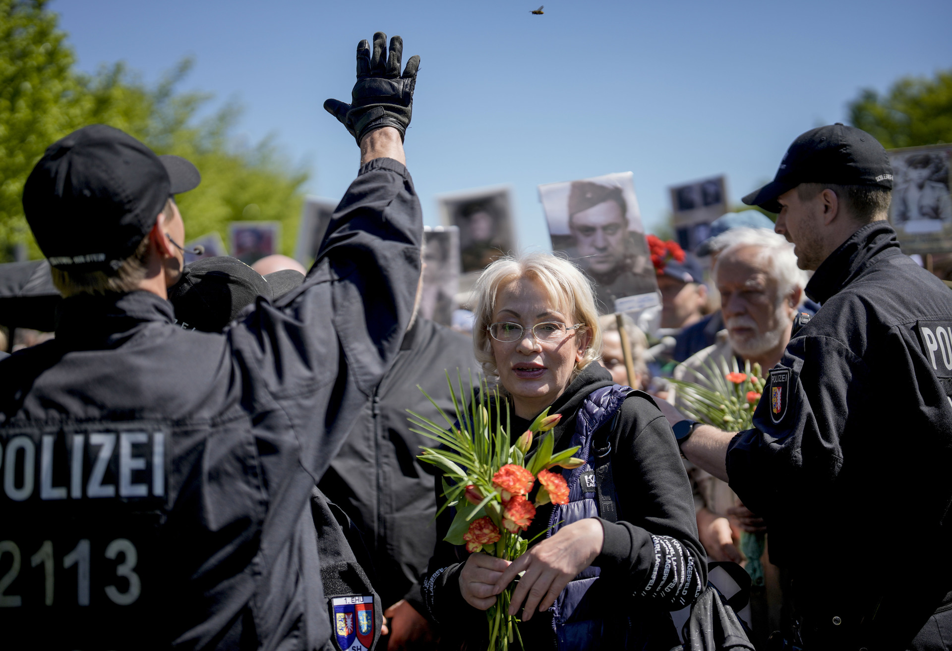 Так, в Берлине, несмотря на то что городские власти запретили демонстрацию флагов, символов и другой атрибутики, неразрывно связанной с Днём Победы, активисты организовали шествие «Бессмертного полка». Однако полиция Берлина не позволила его участникам пройти единым строем к Мемориалу павшим советским воинам в Тиргартене, а к памятнику пропускали лишь группами по десять человек. Кроме того, берлинская полиция заставила пожилую женщину снять футболку с надписью «Дружба» и флагами России и Германии, в которой она пришла в Трептов-парк.