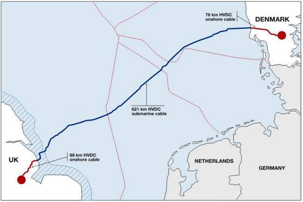 Cистемный оператор Дании Energinet официально объявил о запуске Viking Link – трансграничного HVDC соединения ±525 кВ пропускной способностью 1,4 ГВт и протяженностью ≈760 км, которое свяжет ПС Revsing в Южной Ютландии (Дания) и ПС Bicker Fen в Линкольншире (Великобритания).