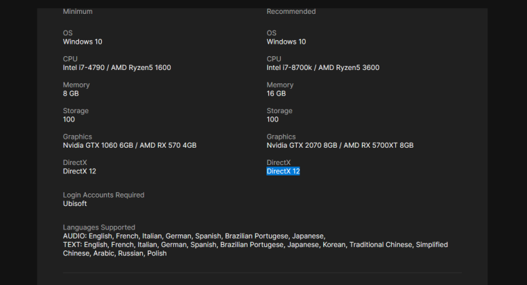 Как видите, они подозрительно невысоки. Игра будет работать на движке AnvilNext Engine поэтому не стоит забывать, что это не официальный анонс от Ubisoft, а описание со страницы игры в цифровом магазине. Вполне вероятно, что эта информация будет исправлена в будущем.
