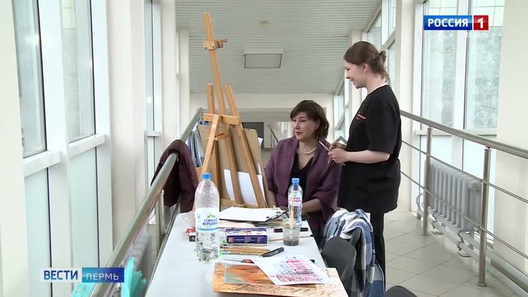 Помимо экскурсий, проводятся также мастер-классы для всех желающих. Татьяна Нечаева — начинающий художник и сегодня участвует в творческом пленэре. Рисует один из университетских корпусов.
