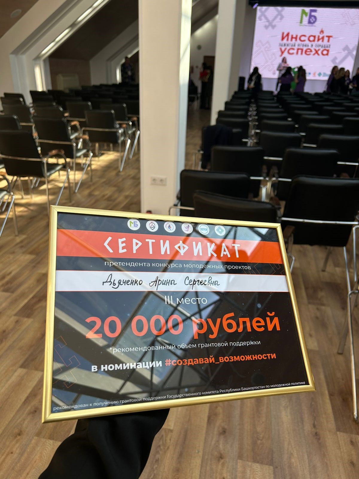 По итогам защиты проект студента гр. 110 БМ-УБ Дьяченко Арины Сергеевны стал победителем третьей степени в номинации «Создавай возможности» и выиграл грант в размере 20 тыс. рублей.