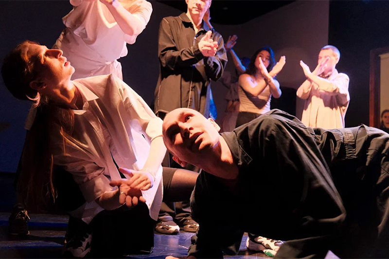Зато случилось второе действо триптиха, отражающее культурное наследие Курехина в современной культуре. Это был пластический театр под музыку Курехина и его фразы из интервью. Спрашиваю у Анастасии Курехиной, углядела ли она в этом перформансе «Тринадевять» отпечаток Сергея: «Вообще историей с балетом я давно занимаюсь. С Максимом Севагиным мы сделали балет “Воробьиное озеро” на музыку “Воробьиной оратории”, который однажды показали на сцене БДТ. Но сейчас мы вернулись к этой идее и придумали опен-колл к 70-летию Сергея».