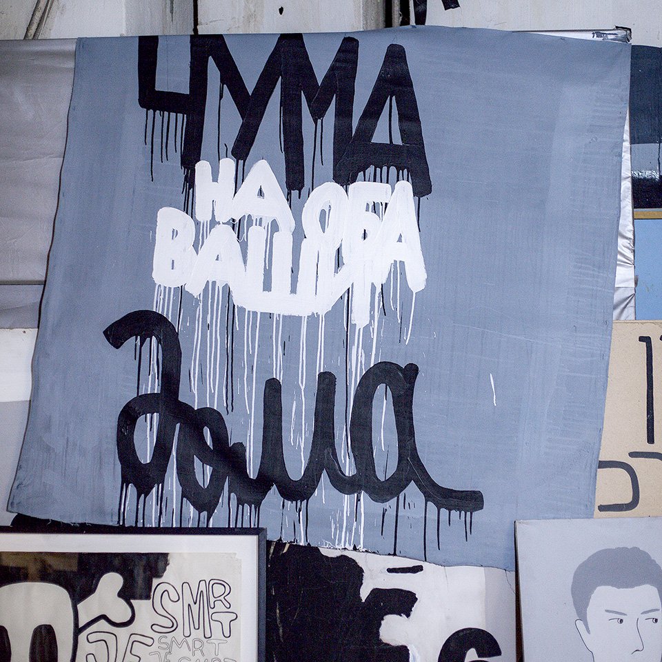 Впоследствии он понял, что подобные выступления — не его путь. И начал рисовать, хотя и не умел (через знакомство с ключевыми фигурами московской арт-сцены 1990-х он усвоил, что «художник — не тот, кто умеет рисовать, а тот, кто умеет рассуждать»). А вот парадоксальные, сбивающие с толку и будто вырванные из контекста фразы стали его главным опознавательным знаком: «Не меньше, чем ты, и не сегодня», «В моем случае — ни в коем случае» и, конечно, коронная «Я не знаю, я из Москвы», которая стала настоящим афоризмом.