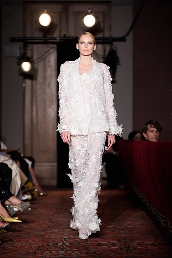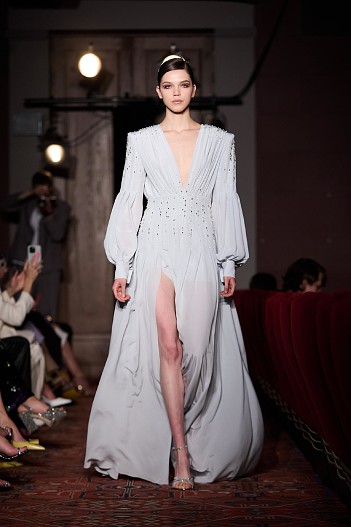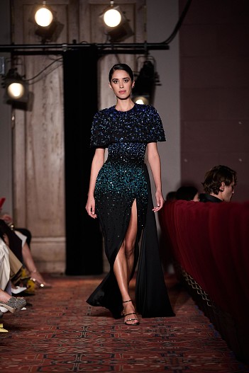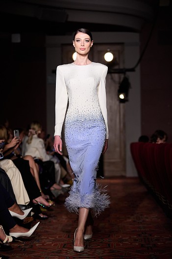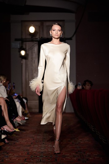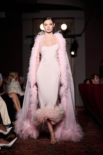 Дефиле началось с показа мини-фильма «История одного платья», который специально для бренда сняла режиссер Ксения Андрианова, спродюсировал Евгений Сангаджиев, а главную роль исполнила актриса Мария Ахметзянова. В этот вечер большой зал «Художественного» превратился в импровизированный подиум и под звуки музыки 60-х на ковровую дорожку кинотеатра вышли модели. Fashion show было разделено на три истории: первая часть — элегантные и лаконичные образы в пастельных оттенках, за ними блестящие платья и костюмы, идеально подходящие для коктейльных вечеринок, а в финале появились яркие летящие вечерние платья, завершил показ костюм невесты из белоснежных кружевных цветов. Основные материалы коллекции — натуральные шелка разной плотности: итальянский шелковый шифон, шелковый жоржет, шелк-кади, гофрированный шелк и шелковое кружево, которое эксклюзивно создавалось для бренда в Швейцарии на производстве Schlaepfer. В коллекции много ручной вышивки с использованием сияющих австрийских кристаллов, французских пайеток, бисера и стекляруса. Еще одним ярким акцентом коллекции стали перья на рукавах, подолах платьев и манжетах жакетов — крайне женственный элемент образов. «Эта коллекция мне особенно дорога. Работа над ней шла полтора года, и я ценю невероятный труд большой международной команды, где каждый является профессионалом своего дела, — прокомментировала Анастасия Задорина. — Я всегда уделяла особое внимание фактурам, деталям и качеству исполнения: мы используем ткани и фурнитуру лучших производителей, все вышивки выполнены вручную — каждая пайетка заботливо пришита нашими мастерами. В коллекции есть модели, изготовление которых заняло более 500 часов, и это действительно высокое искусство. Новую коллекцию можно назвать квинтэссенцией стиля Anastasia Zadorina, в ней много знаковых для нас силуэтов, цветов и вышивок. Для меня это воплощение того, каким должен быть современный кутюр». Показ посетили: Елена Перминова, Ксения Шипилова, Ксения Соловьёва, Екатерина Мухина, Сергей Капков, Полина Аскери, Алсу, Элина Джанибекян, Юлия Барановская, Сабина Ахмедова, Алеко, Алексей Сухарев, Николай Овечкин, Оксана Он, Ульяна Донскова, Виктория Синицына и другие.