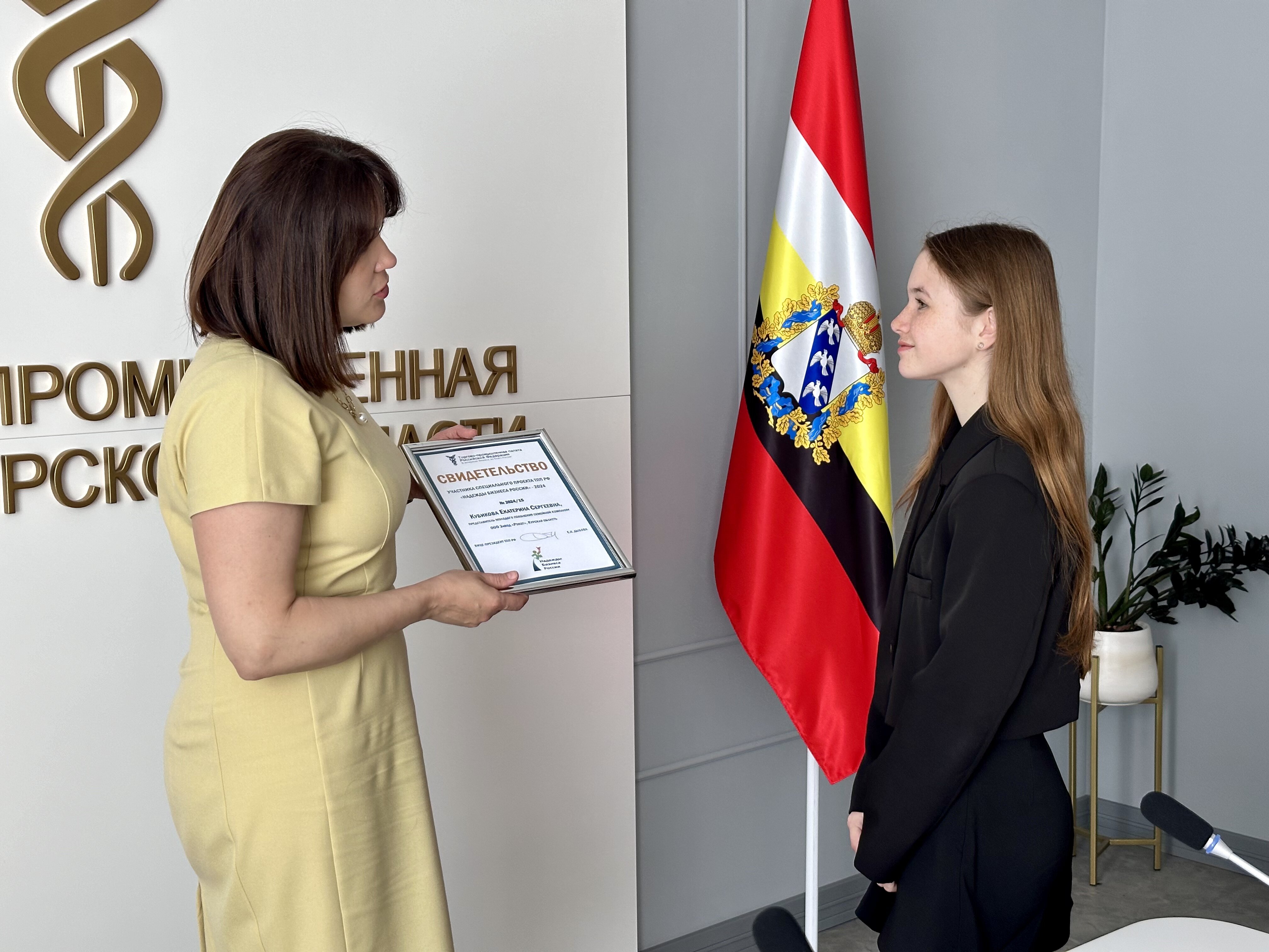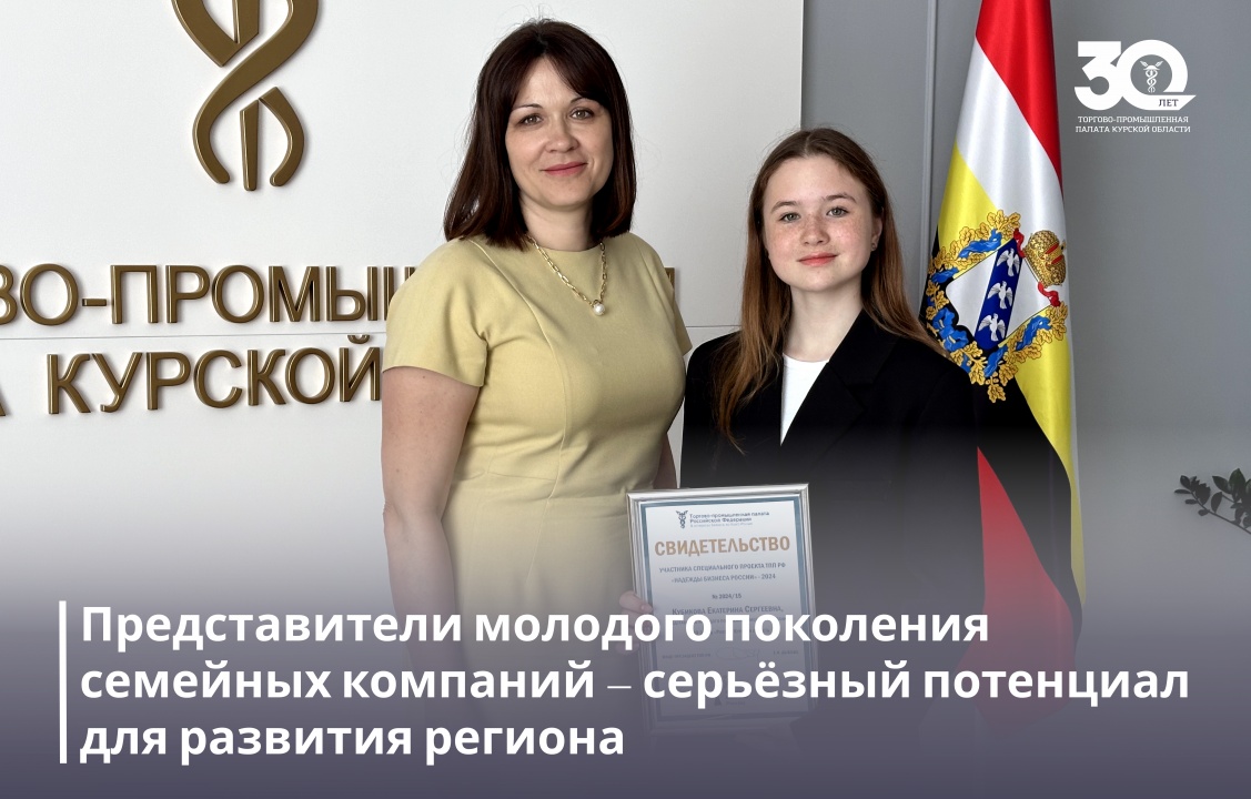 В ТПП Курской области сегодня вручили свидетельство участника нового этапа проекта Екатерине Кубиковой – представителю молодого поколения семейной компании ООО Завода «Рокот». Для неё этот проект – не только шанс представить семейный бизнес, но и возможность обменяться опытом, познакомиться с успешными предпринимателями и обрести новые знания и навыки.