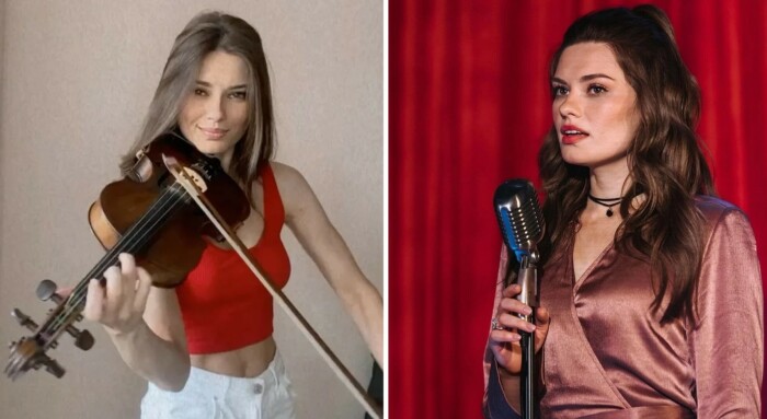 Лиана Гриба использует свои музыкальные таланты во время съемок в кино.