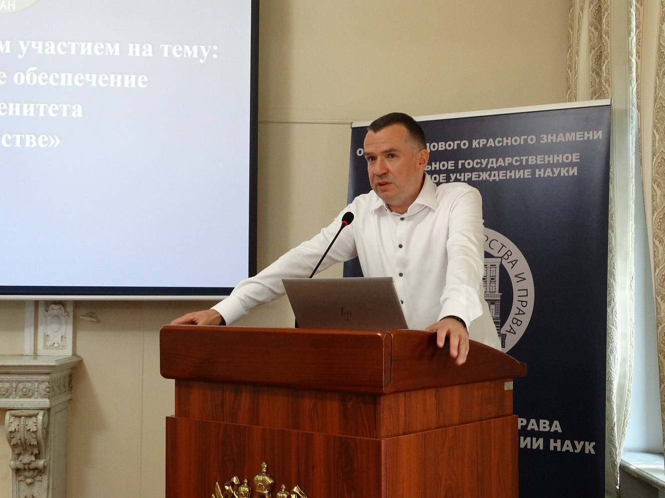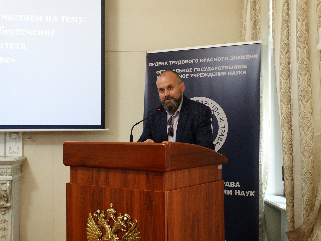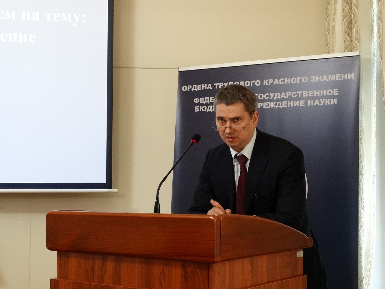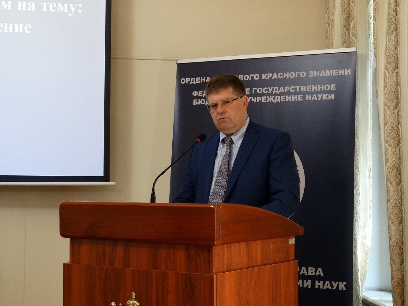 С докладом выступил Директор Института государства и права Российской академии наук, член-корреспондент РАН, доктор юридических наук, профессор Савенков А.Н.