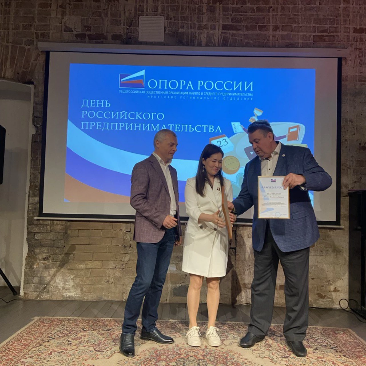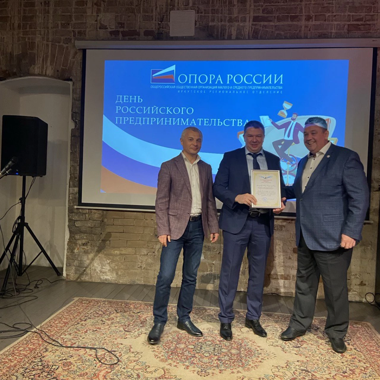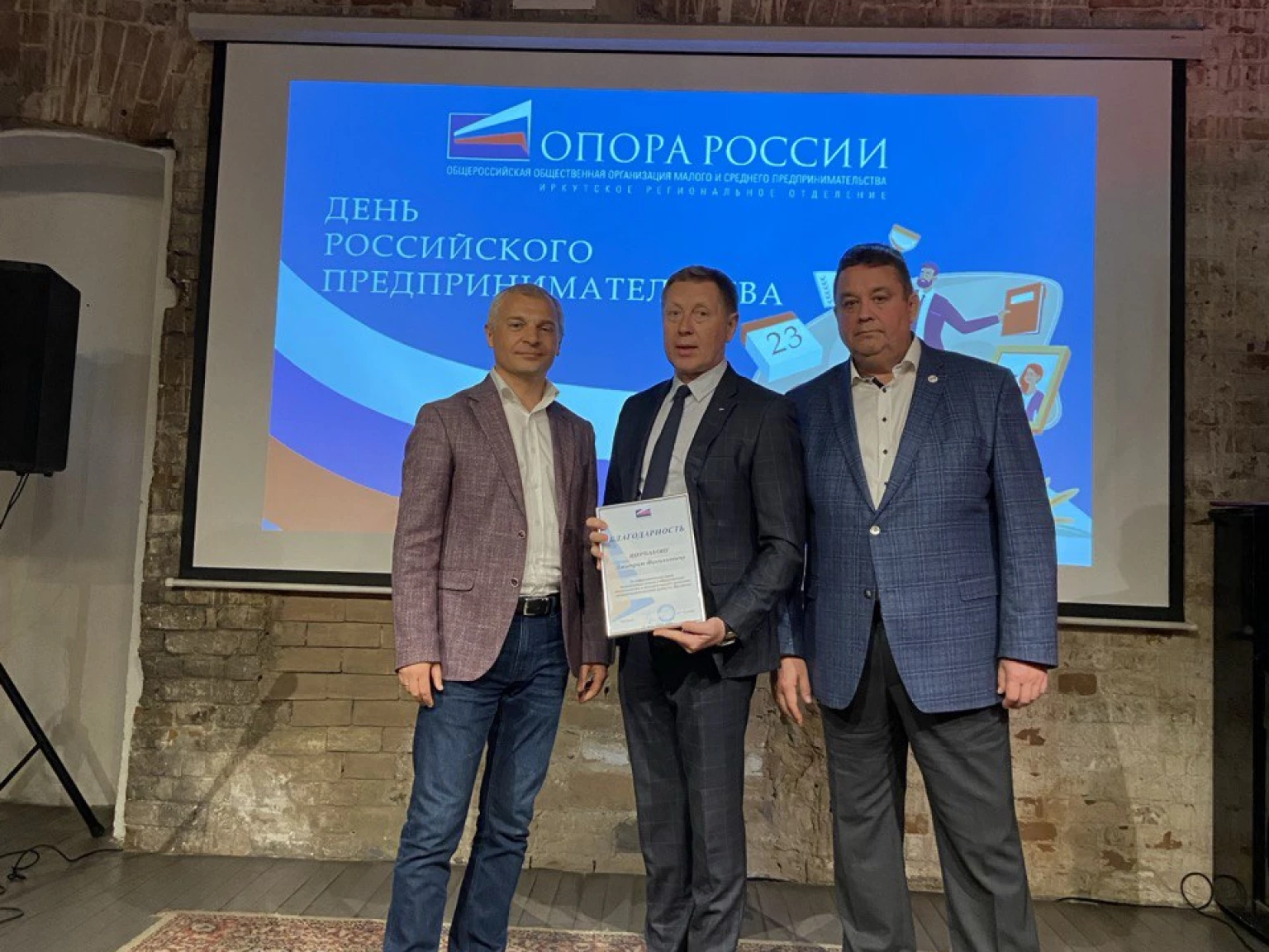 23 мая в рамках празднования Дня предпринимателя Председатель Иркутского регионального отделения «ОПОРЫ РОССИИ» Алексей Егоров и Уполномоченный по защите прав предпринимателей в Иркутской области Андрей Лабыгин наградили благодарственными письмами членов Иркутского регионального отделения «ОПОРЫ РОССИИ», которые своим профессионализмом внесли особый вклад в развитие предпринимательства в регионе.