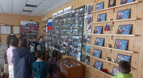 Людмила Балай рассказала об участниках СВО, их жизни там, представила экспозиции с личными вещами, осколки от снарядов, флаг с подписями ребят и многое другое. У каждого предмета и фотографии есть история, о которой Людмила Балай рассказала гостям.