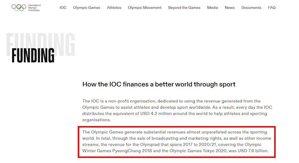 ДОХОДЫ МОК ИСЧИСЛЯЮТСЯ МИЛЛИАРДАМИ//СКРИНШОТ СТРАНИЦЫ САЙТА OLYMPICS.COM