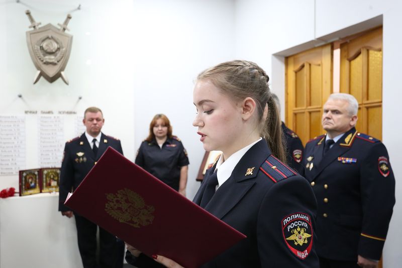 В зале музея истории регионального УМВД шестнадцать молодых сотрудников полиции – оперуполномоченные уголовного розыска, участковые уполномоченные полиции, инспекторы по делам несовершеннолетних, госавтоинспекторы торжественно поклялись защищать права и свободы человека и гражданина, свято соблюдать Конституцию Российской Федерации и федеральные законы, быть мужественными и не щадить своих сил в борьбе с преступностью, достойно исполнять свой служебный долг.