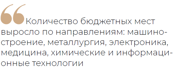 В министерстве образования рассказали, что структура контрольных цифр приёма по востребованным региональной экономикой специальностям и профессиям среди учреждений СПО была изменена в ответ на запрос предприятий. Количество бюджетных мест выросло по направлениям: машиностроение, металлургия, электроника, медицина, химические и информационные технологии.