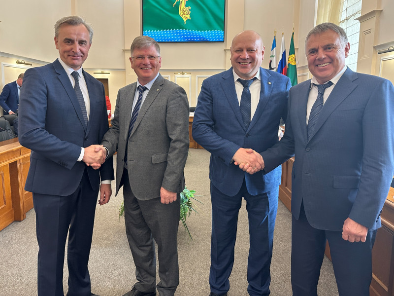 Официальная встреча мэра Ангарского округа Сергея Петрова, председателя Думы Александра Городского с мэром Омска Сергеем Шелестом и председателем Омского городского Совета Владимиром Корбутом состоялась сегодня, 4 июня.