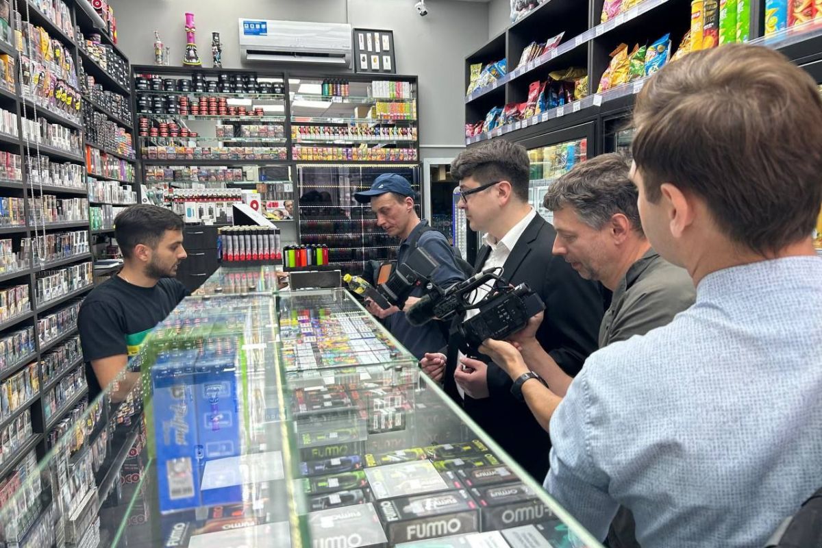 Зампред комитета Госдумы по промышленности и торговле Александр Спиридонов посетил торговые объекты, в которых продают вейпы и другие устройства для курения. На соблюдение действующих норм закона проверили 10 точек.