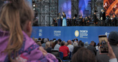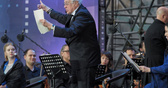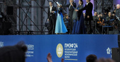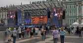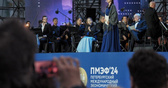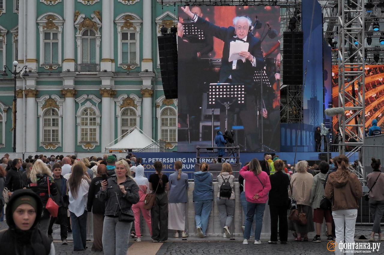 Звездные артисты Театра имени Ленсовета вышли на сцену, установленную на Дворцовой площади в рамках ПМЭФ, чтобы по случаю